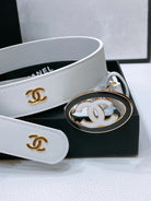 CC 30MM BELT IN WHITE SMOOTH CALFSKIN WHITE MIX BLACK METAL LOGO GOLD HARDWARE