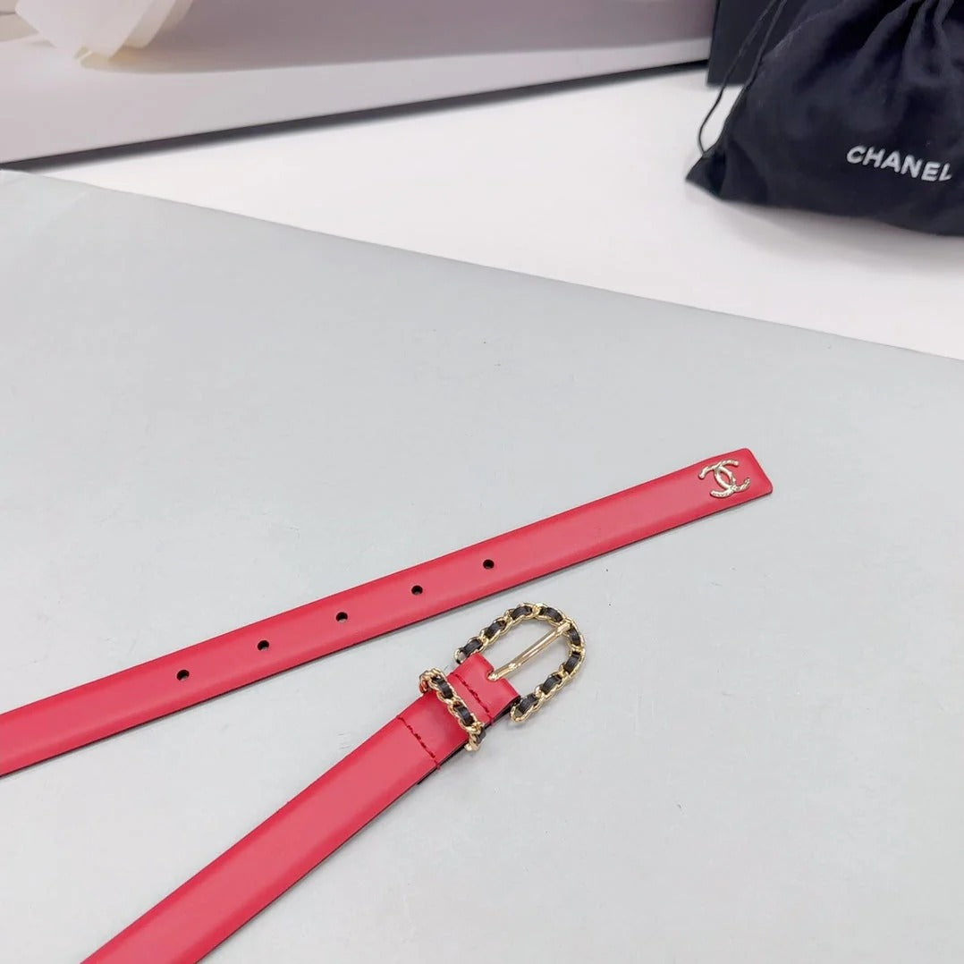CC BELT 20 MM IN CHERRY RED MIX BLACK CALFSKIN GOLD HARDWARE