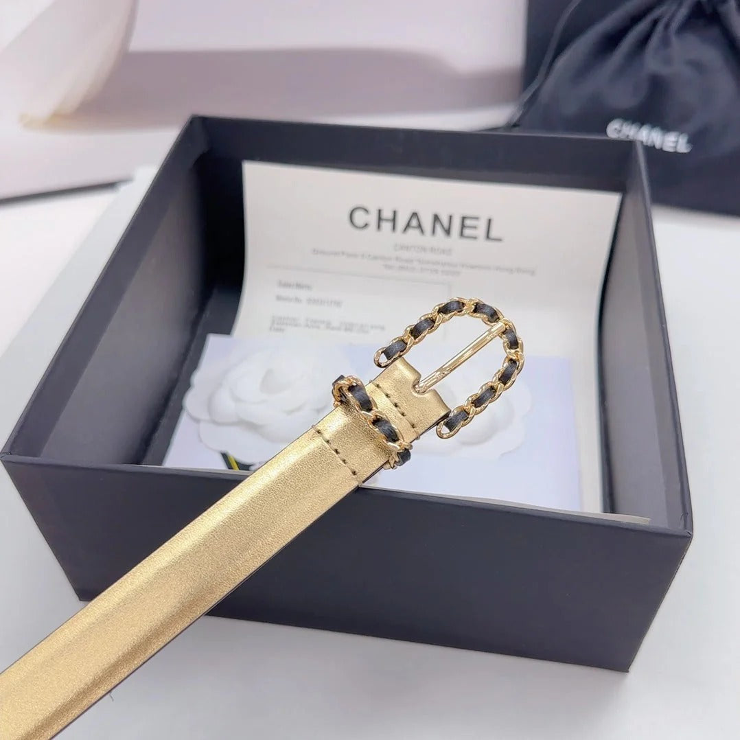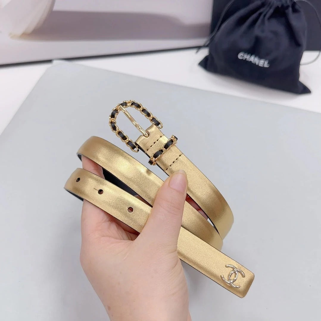 CC BELT 20 MM IN GOLD MIX BLACK CALFSKIN GOLD HARDWARE