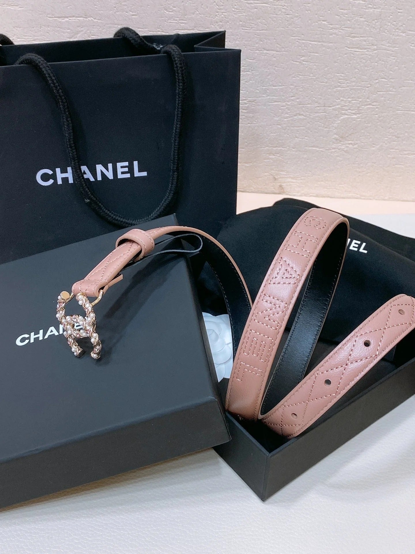 CC BELT 20MM IN PEACHY PINK EMBROIDERED CALFSKIN GOLD HARDWARE ATTACH PEARLS