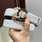 CC BELT 3.0CM LEATHER WHITE BUCKLE GOLD PEARL DIAMOND