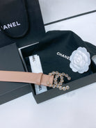 CC BELT 30 MM IN ALMOND BEIGE CALFSKIN PEARL LOGO WITH GOLD HARDWARE
