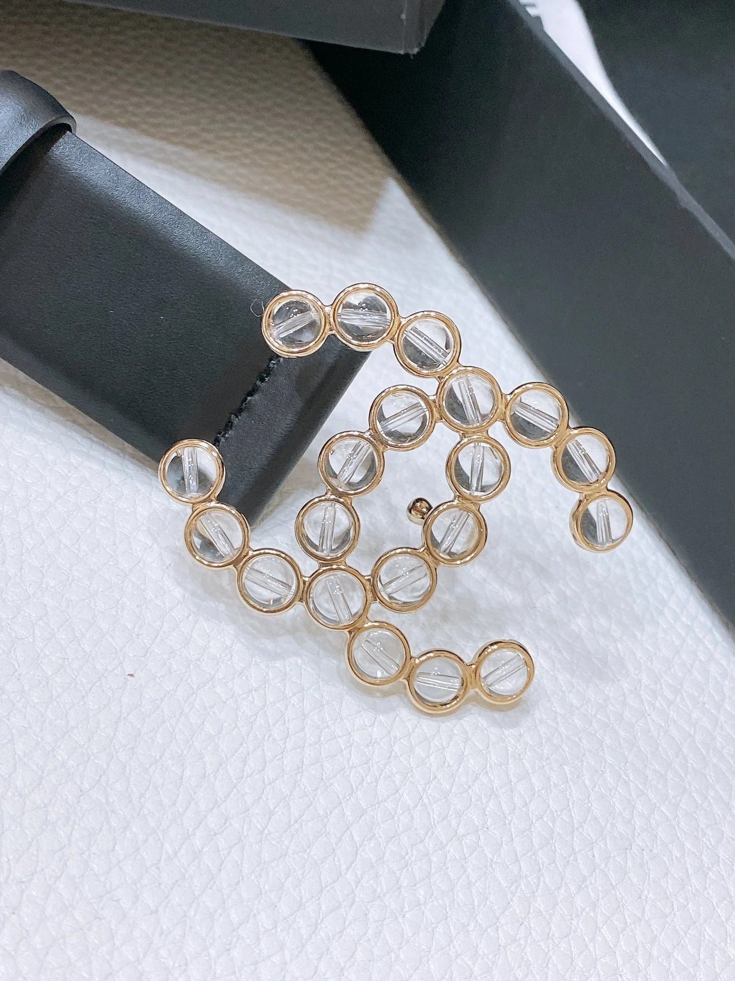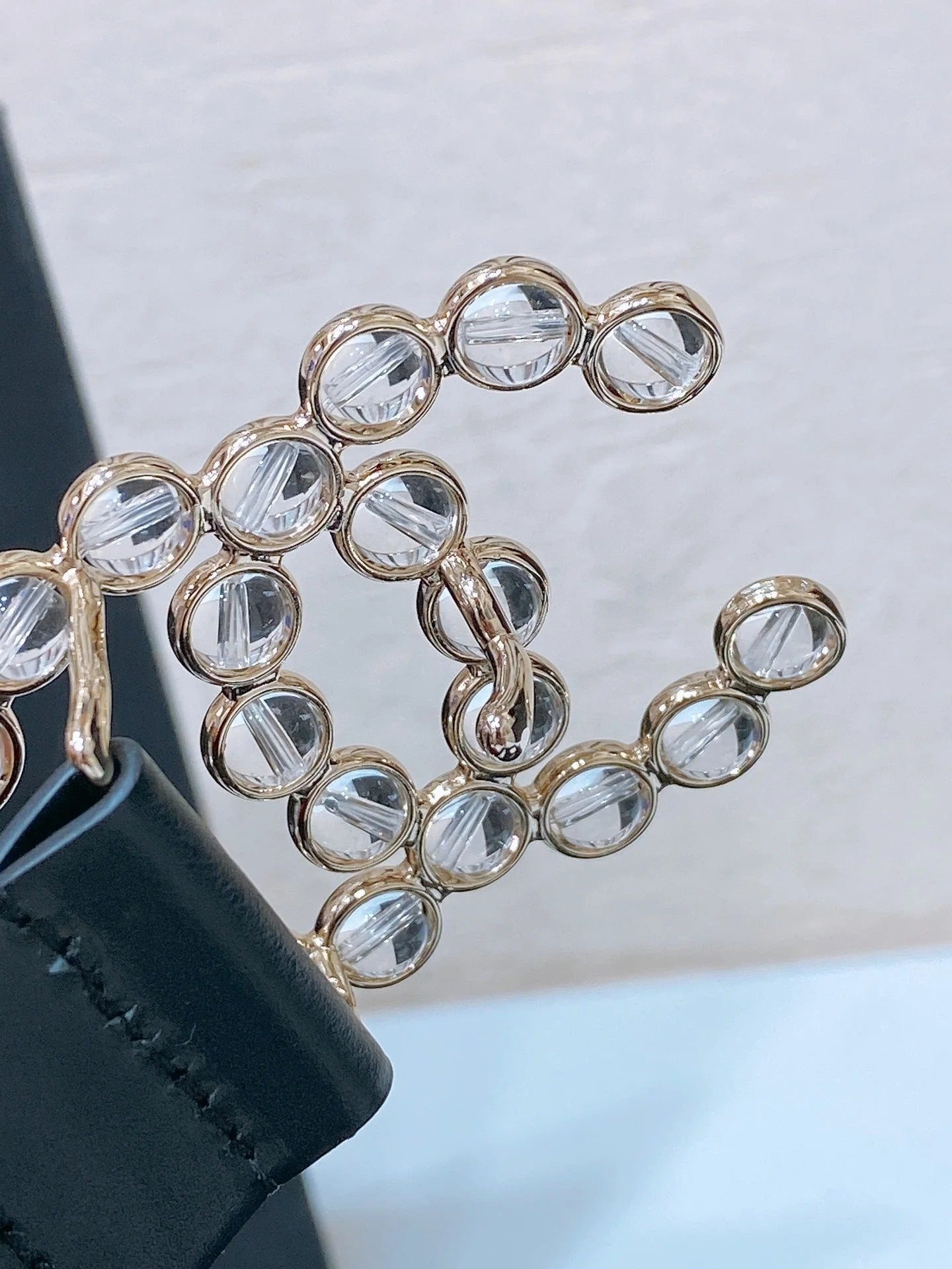 CC BELT 30 MM IN BLACK CALFSKIN PEARL LOGO