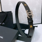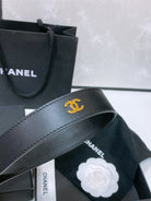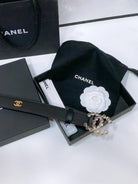 CC BELT 30 MM IN BLACK CALFSKIN PEARL LOGO WITH GOLD HARDWARE