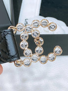 CC BELT 30 MM IN BLACK EMBROIDERED CALFSKIN PEARL LOGO WITH GOLD HARDWARE