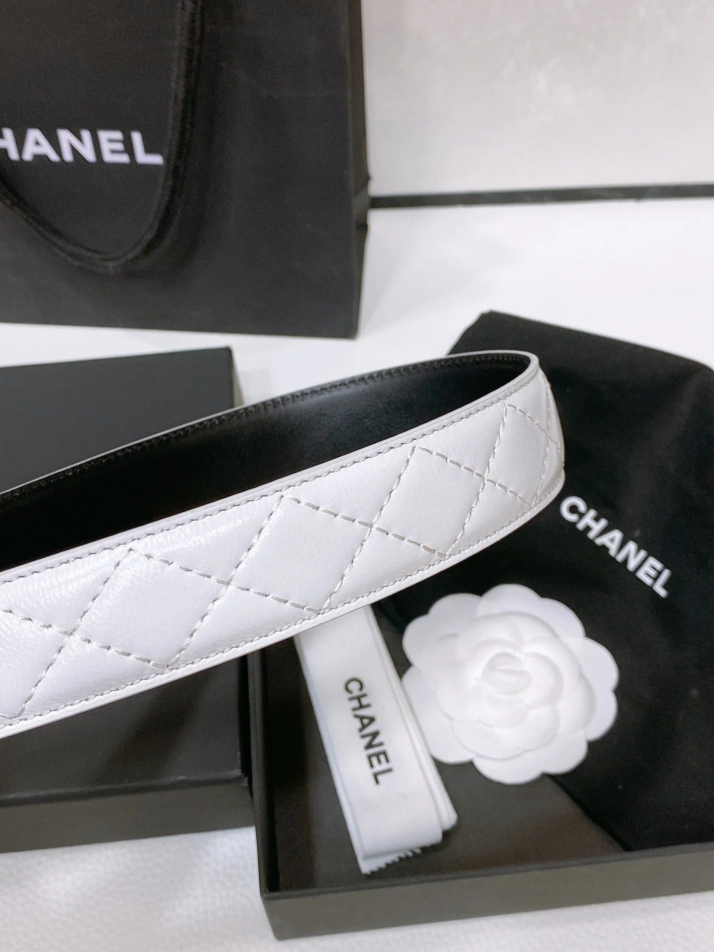 CC BELT 30 MM IN WHITE EMBROIDERED CALFSKIN PEARL LOGO WITH GOLD HARDWARE