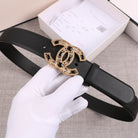 CC WOMEN'S BELT 3.0CM BUCKLE BLACK DIAMOND LEATHER