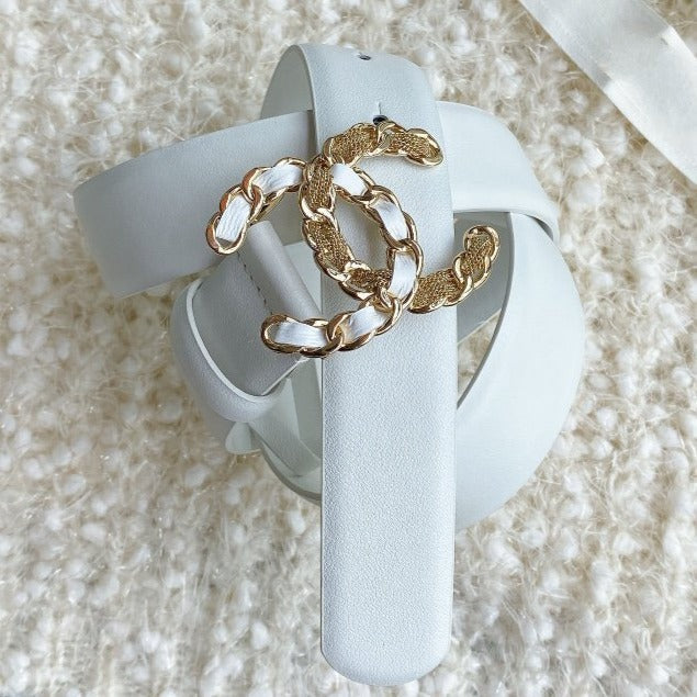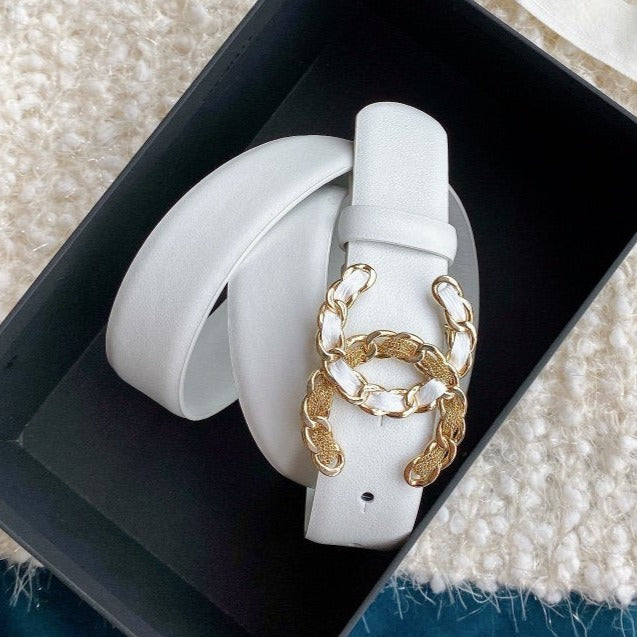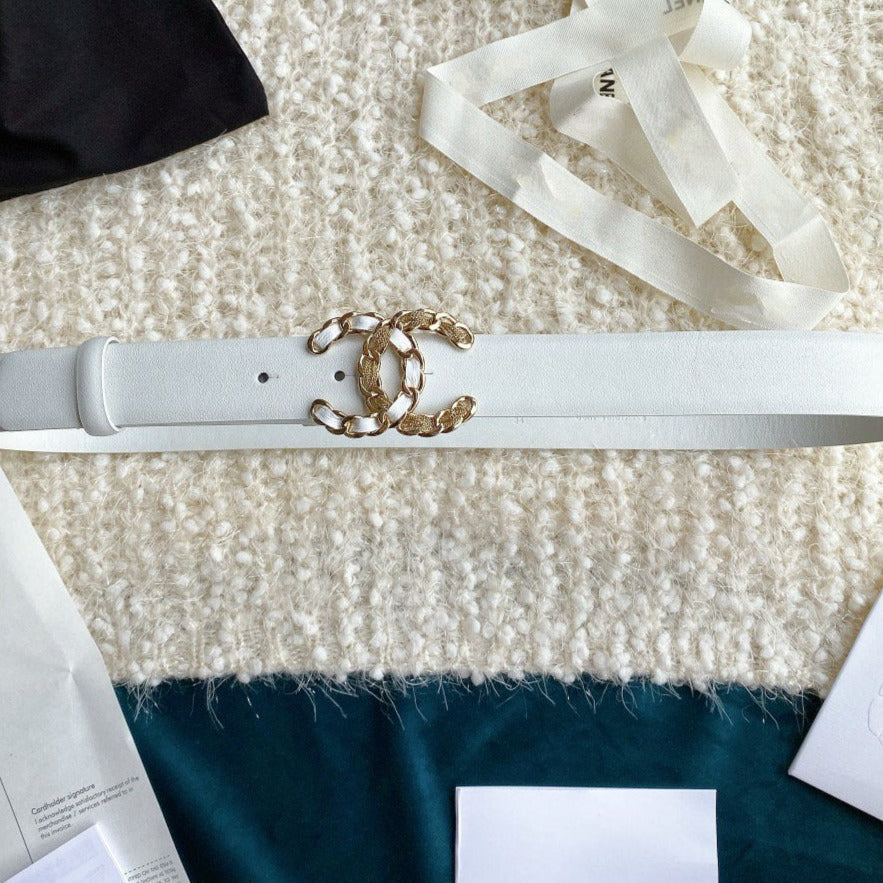 CC WOMEN'S BELT 3.0CM BUCKLE MULTICOLOR LEATHER WHITE