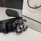 CC WOMEN'S BELT 30MM LEATHER BLACK BUCKLE SILVER BLACK
