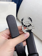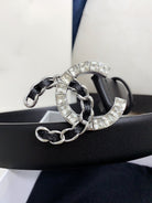 CC WOMEN'S BELT 30MM LEATHER BLACK BUCKLE SILVER BLACK DIAMOND