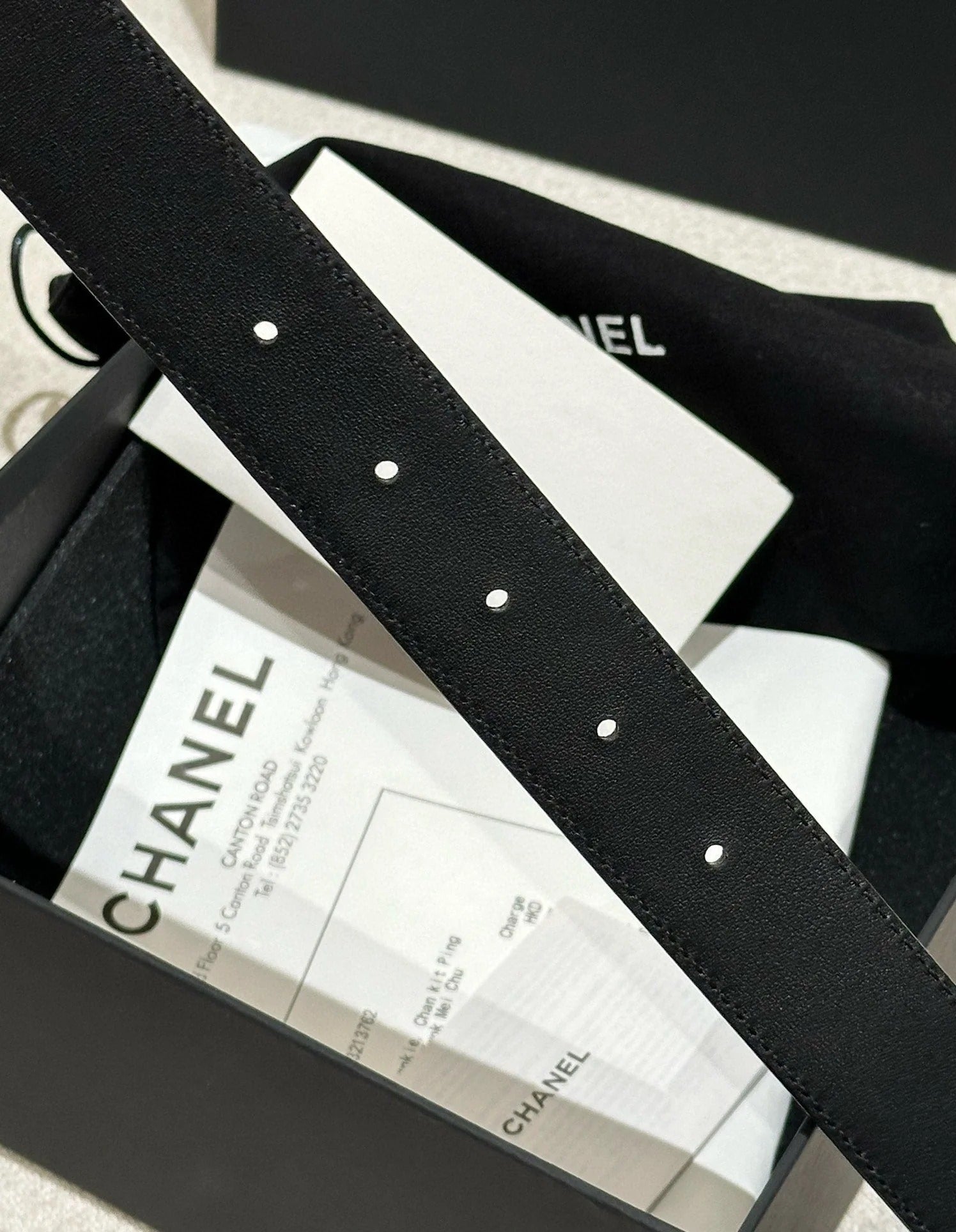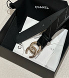 DOUBLE C BELT 30MM IN BLACK CALFSKIN EMBOSSED LOGO GOLD BUCKLE