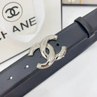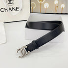 DOUBLE C BELT 30MM IN BLACK CALFSKIN WITH SHINY SILVER BUCKLE