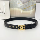 DOUBLE C BELT 30MM IN BLACK QUILTED LEATHER WITH GOLD BUCKLE