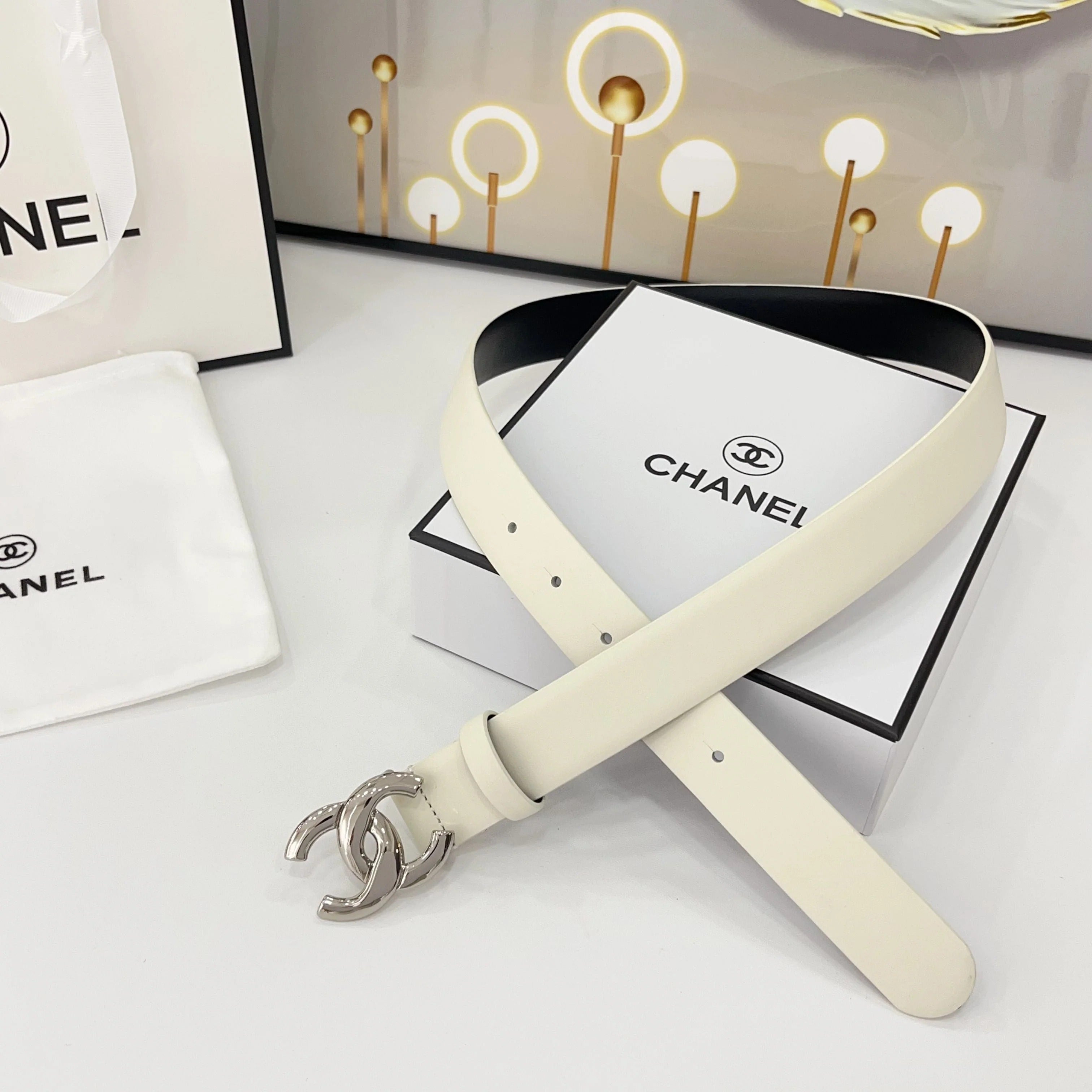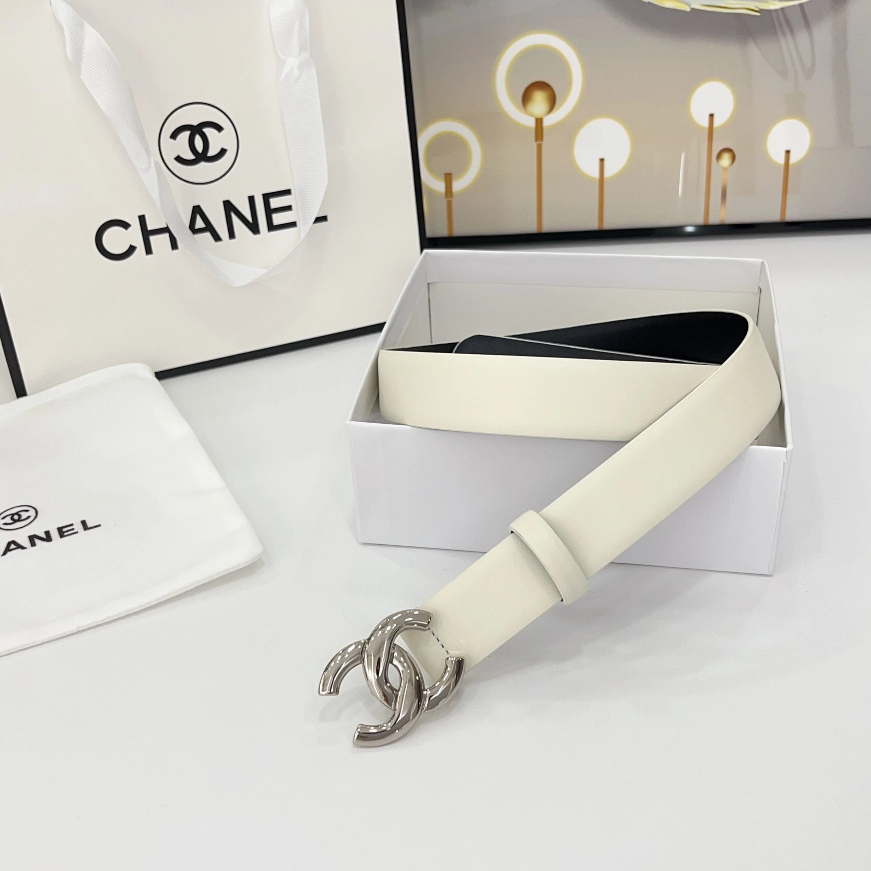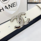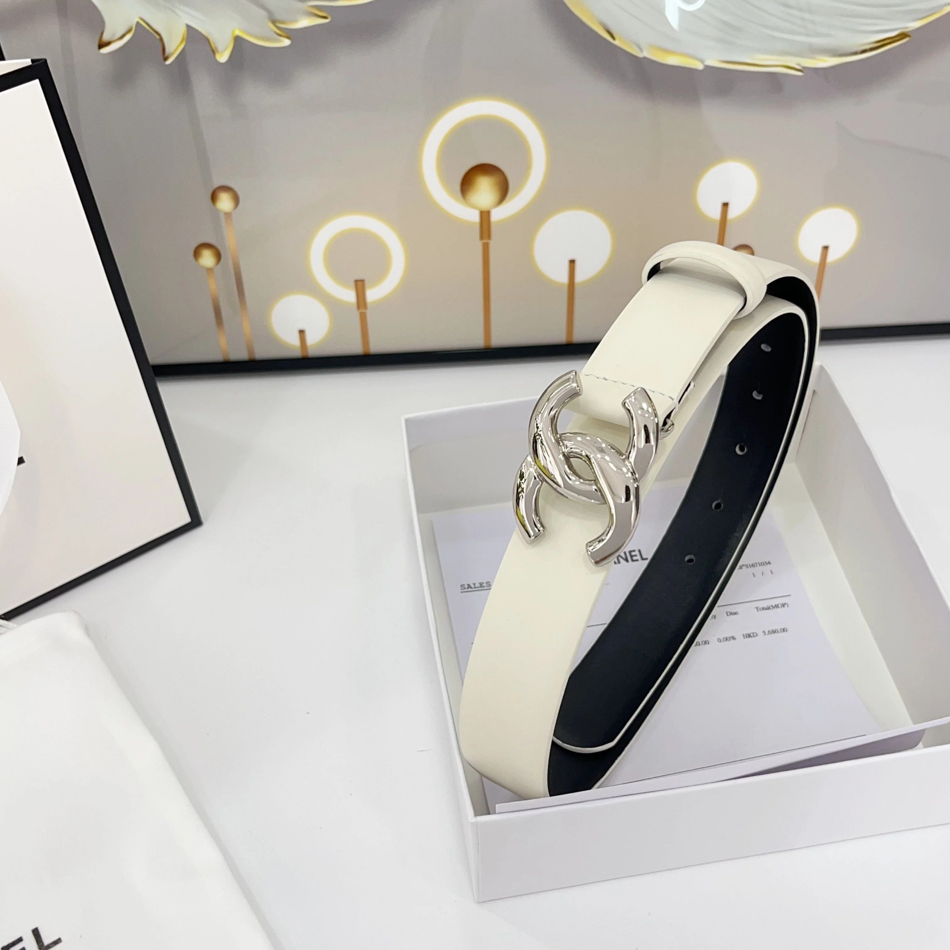 DOUBLE C BELT 30MM IN WHITE CALFSKIN WITH SHINY SILVER BUCKLE