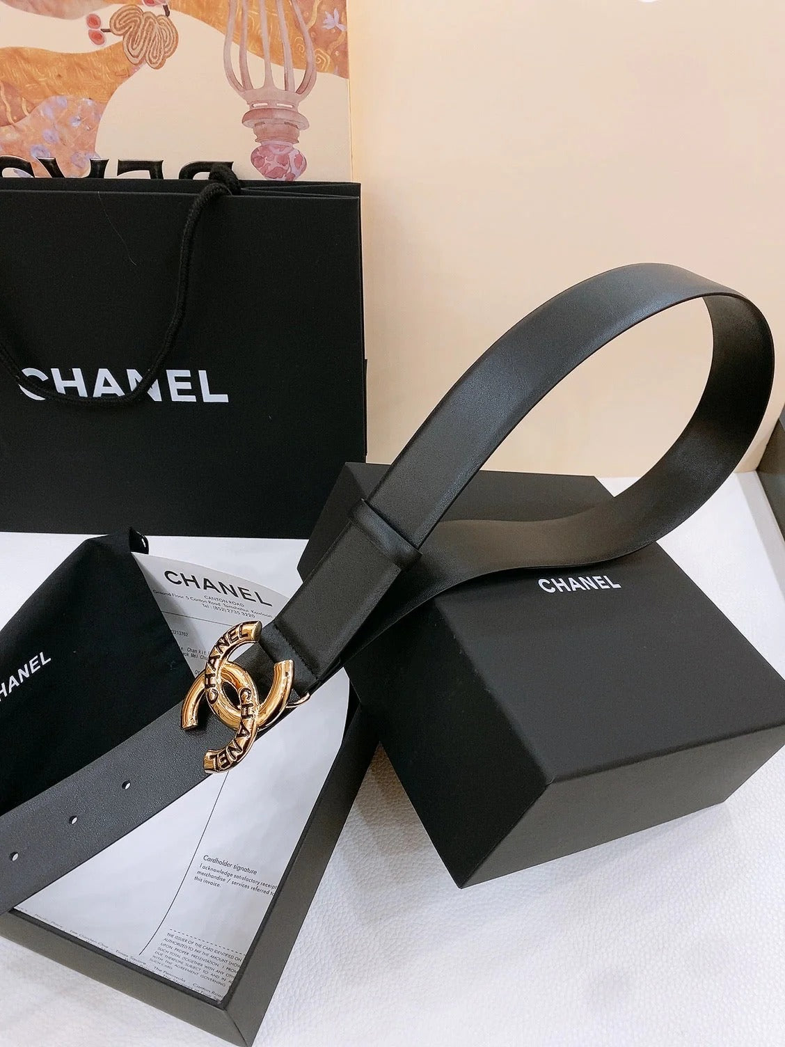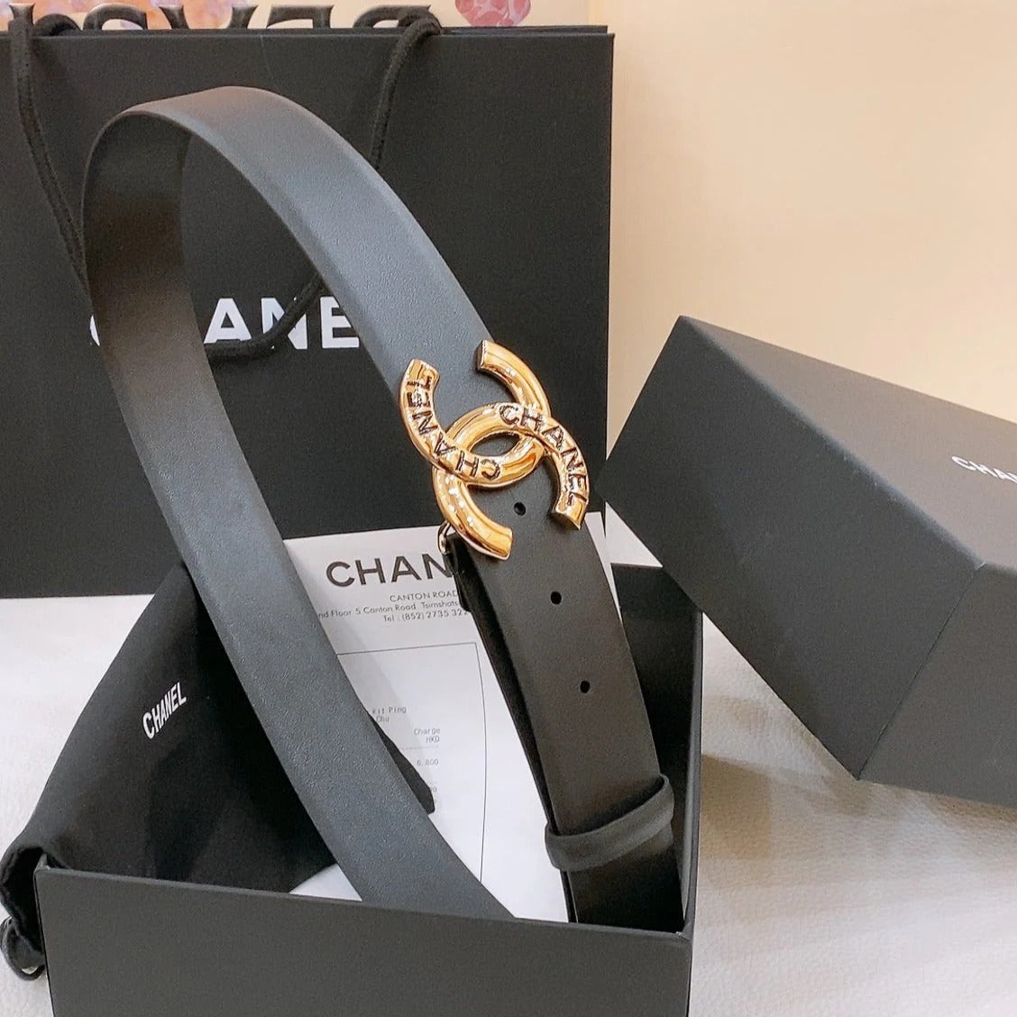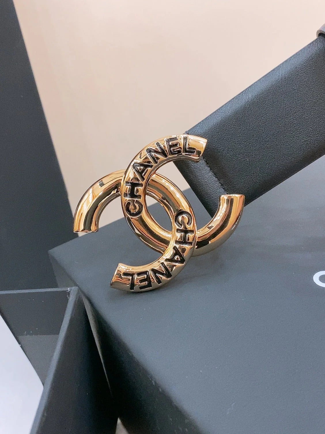 DOUBLE C BELT 40MM IN BLACK CALFSKIN GOLD BUCKLE EMBOSSED BLACK LOGO
