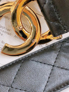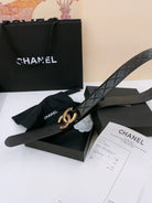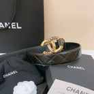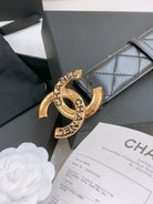 DOUBLE C BELT 40MM IN BLACK QUILTED LAMBSKIN GOLD BUCKLE EMBOSSED LOGO