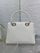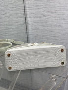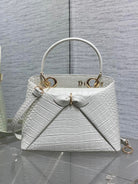 CD 26SS Bow-Adorned Bag White Glossy Crocodile Pattern Embossed Calfskin 272525