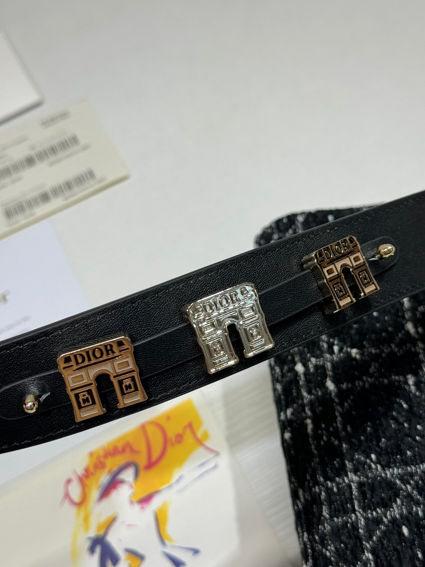 CD Lady Bag 20cm Black Lambskin Black White Canvas
