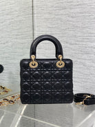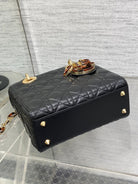 CD Lady Bag 20cm Black Lambskin Brown Charm