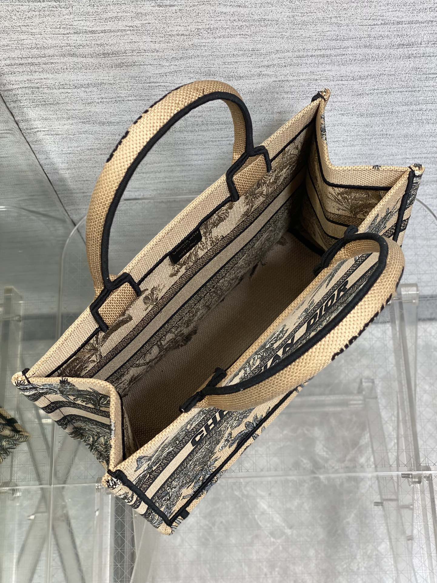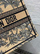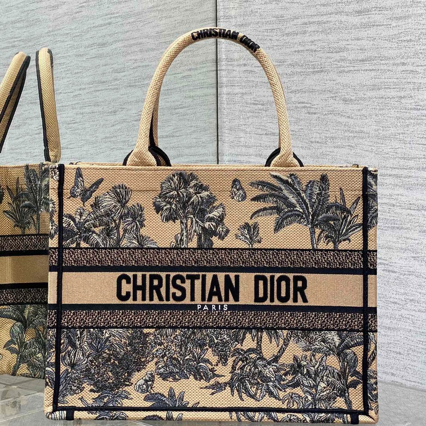 CD Medium Dior Book Tote Tropical Pattern Black Beige Cotton