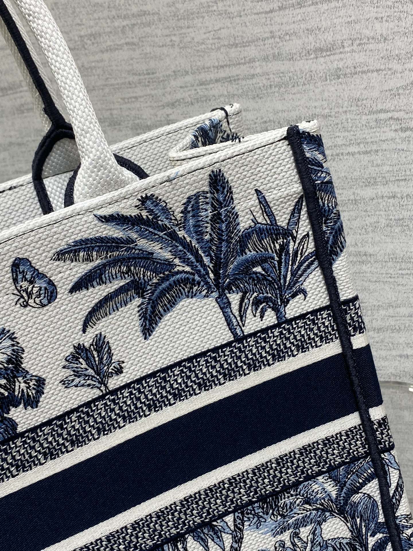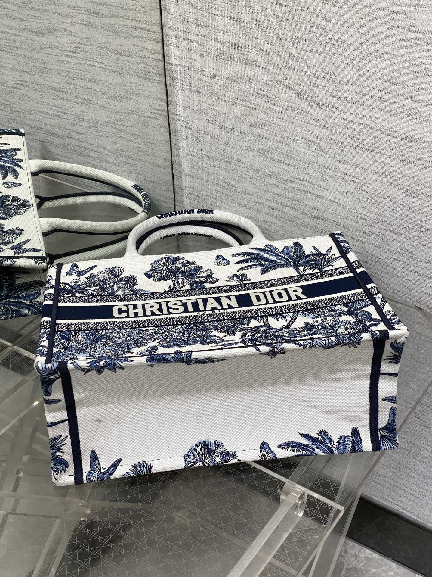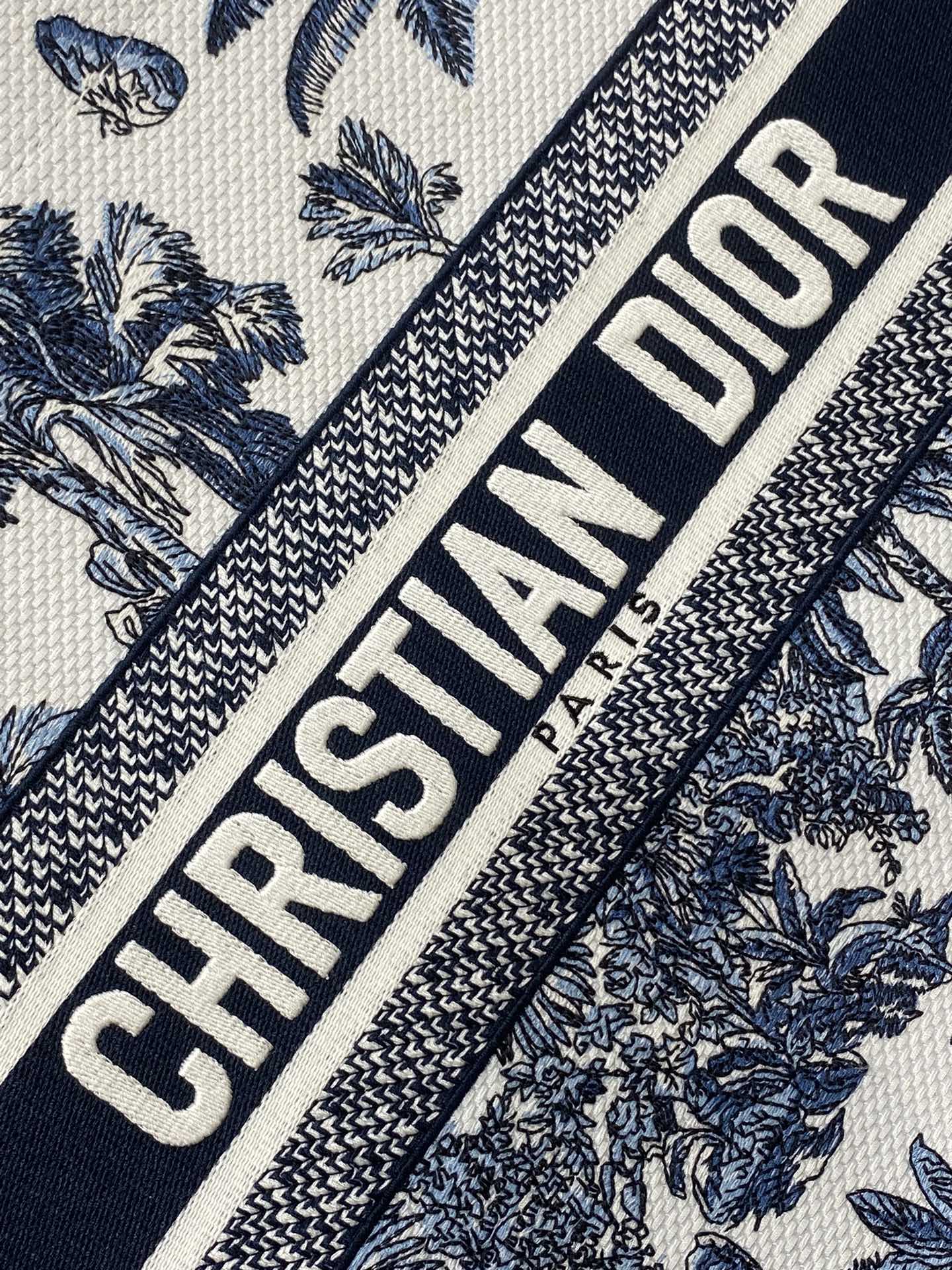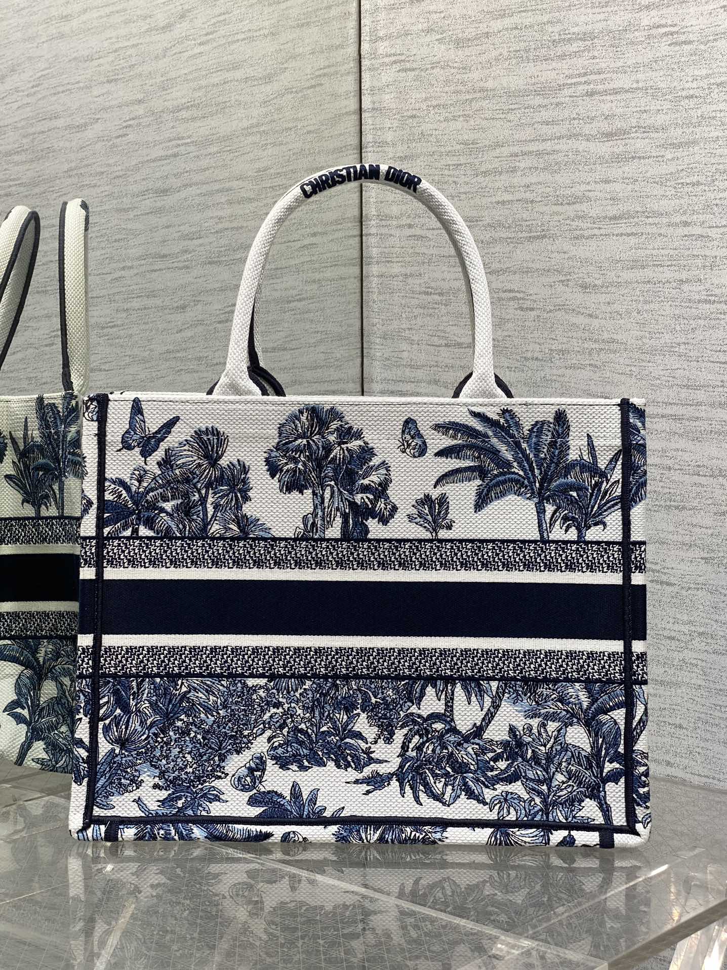CD Medium Dior Book Tote Tropical Pattern Slate Blue White Black Cotton