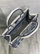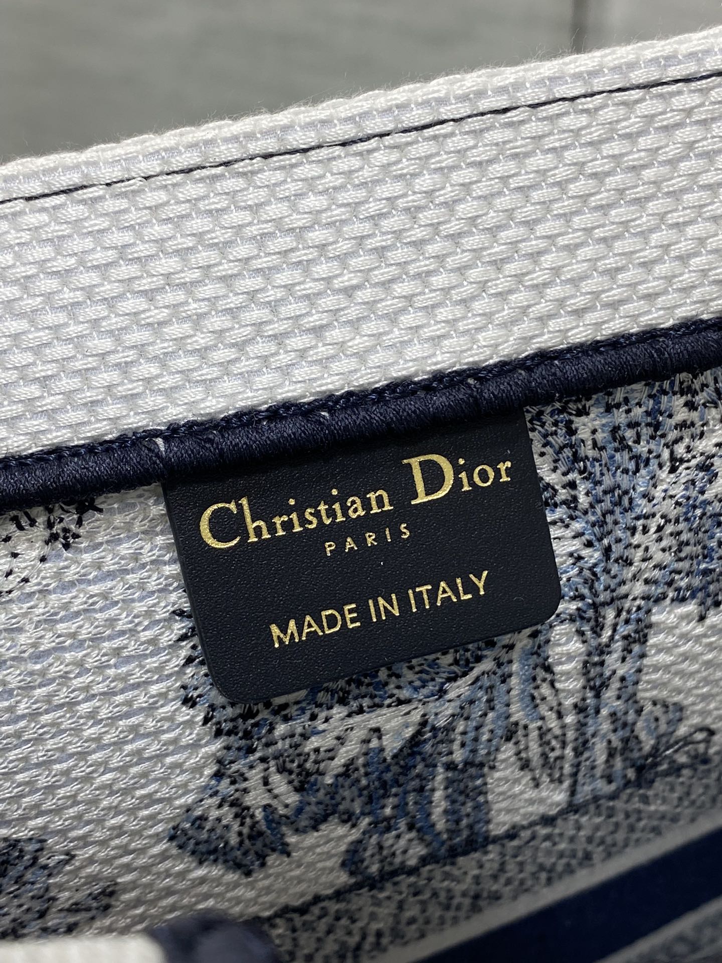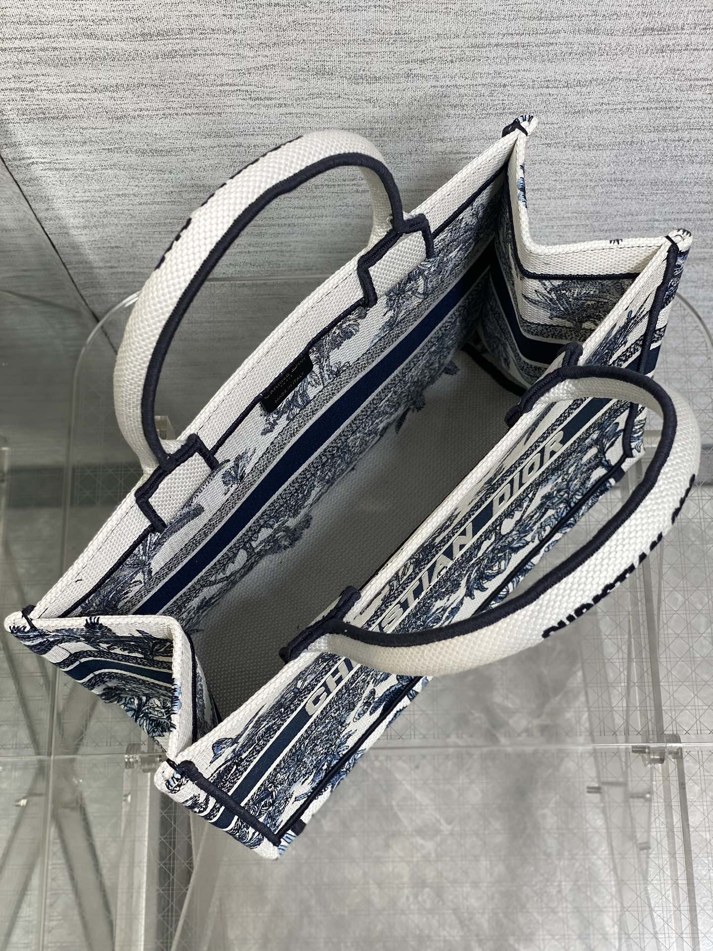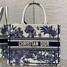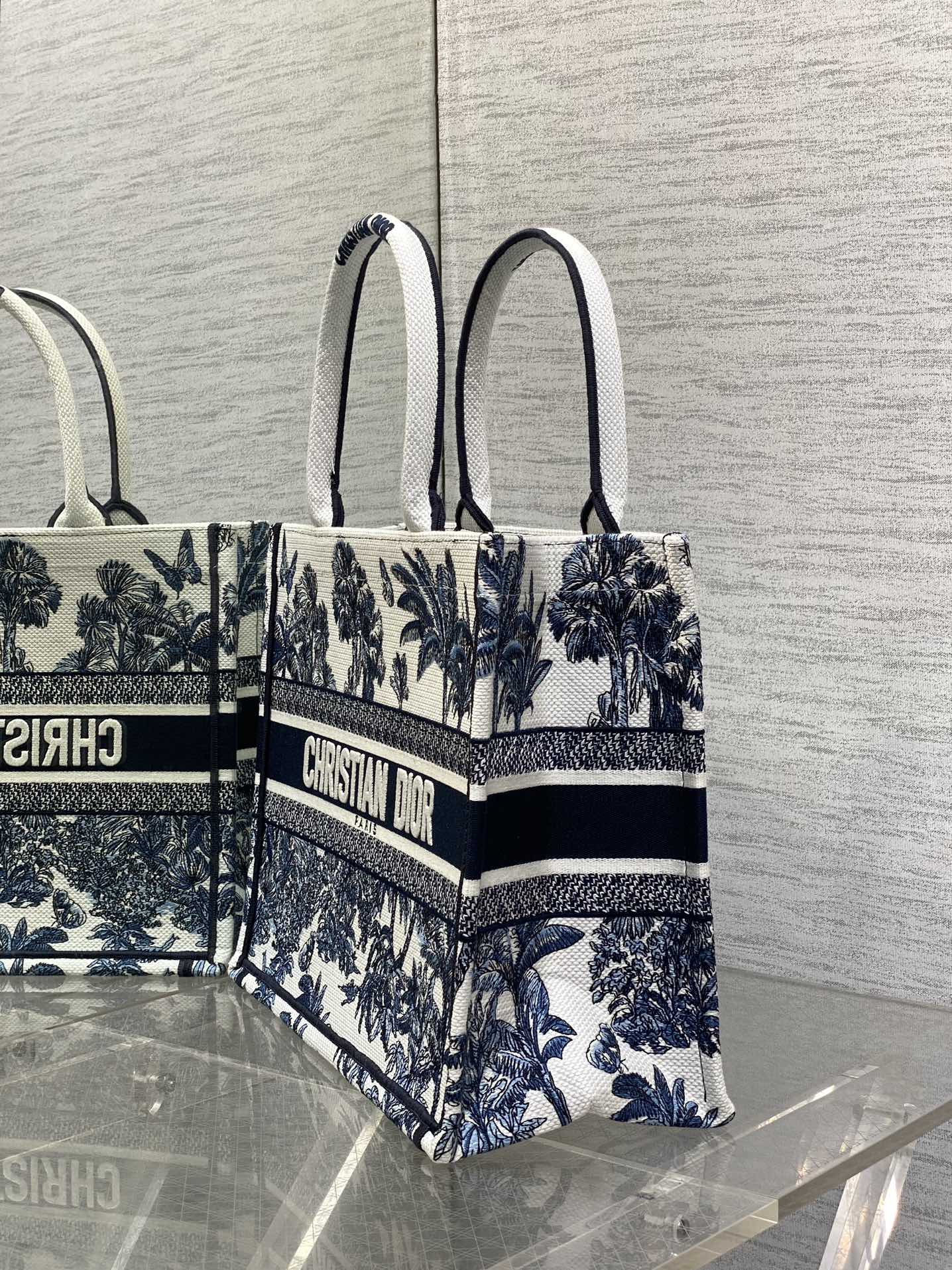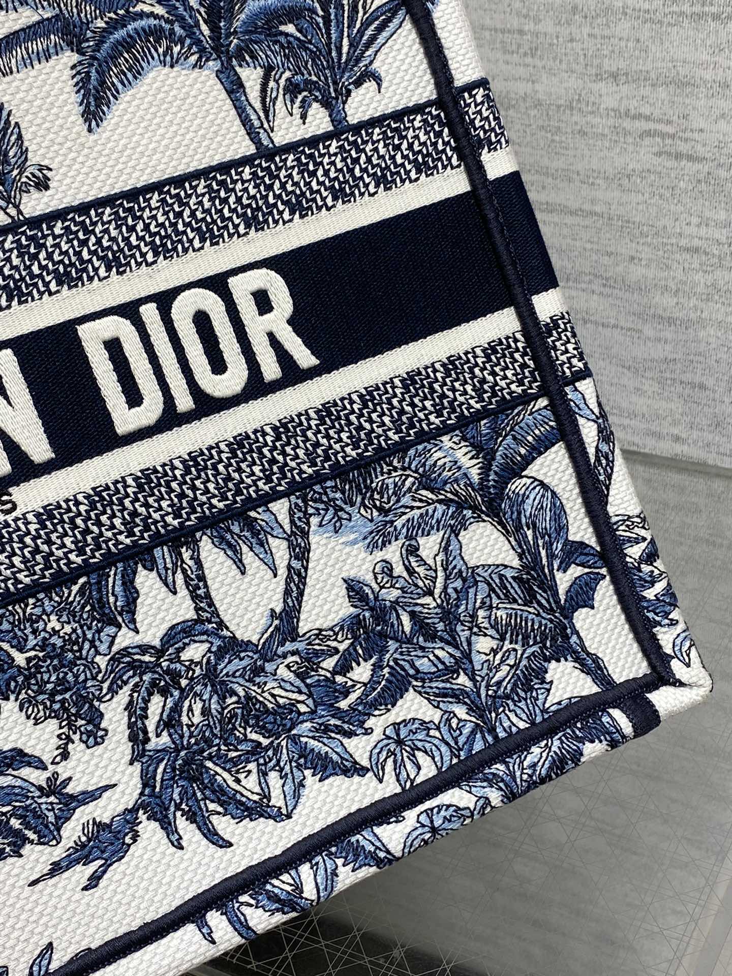 CD Medium Dior Book Tote Tropical Pattern Slate Blue White Black Cotton
