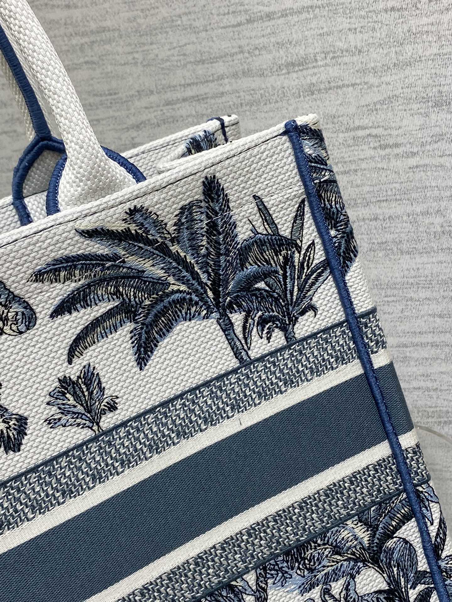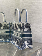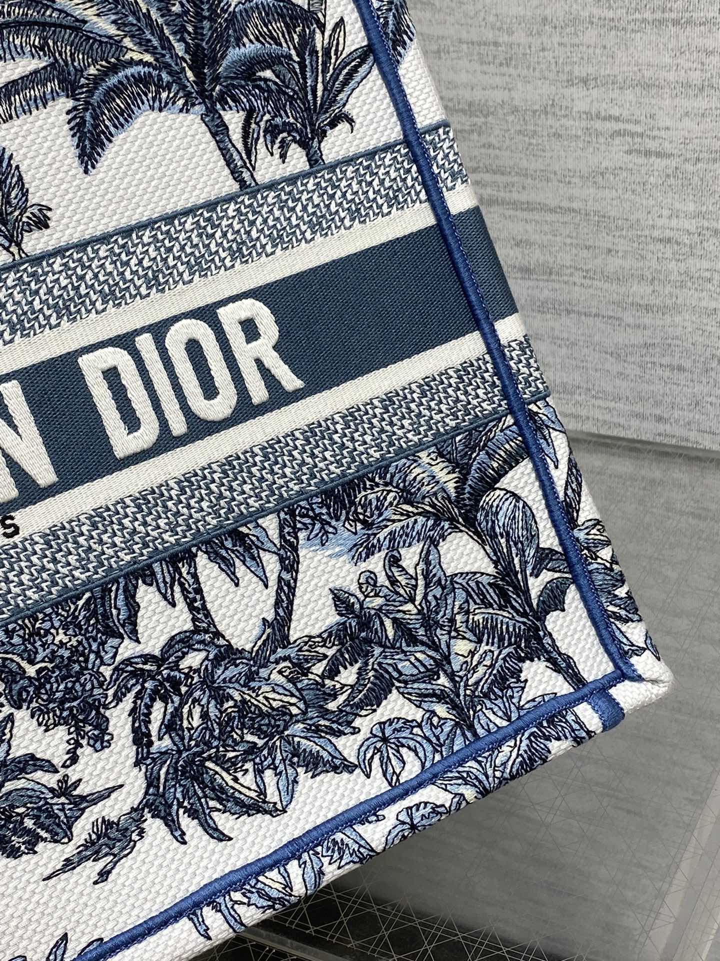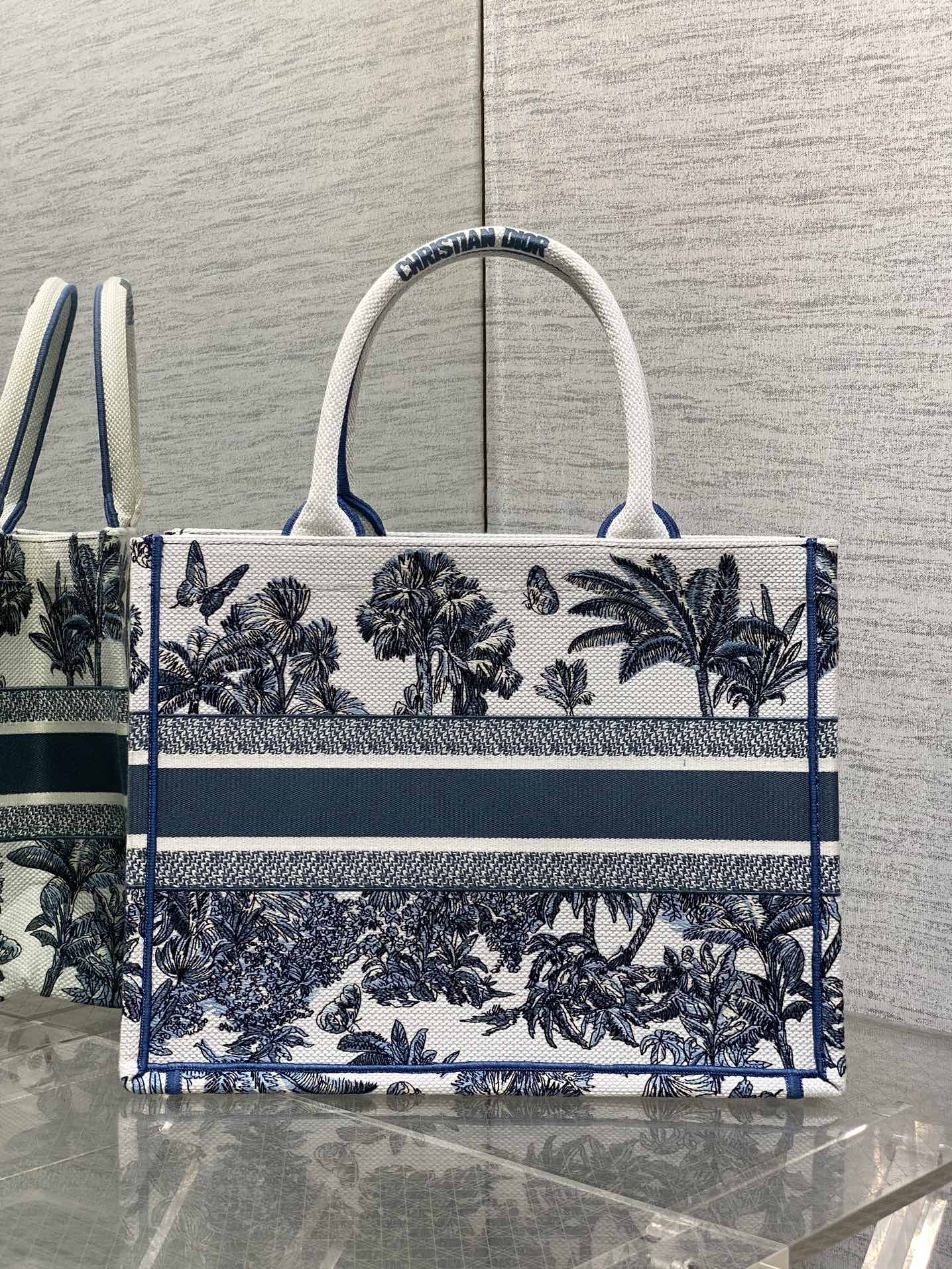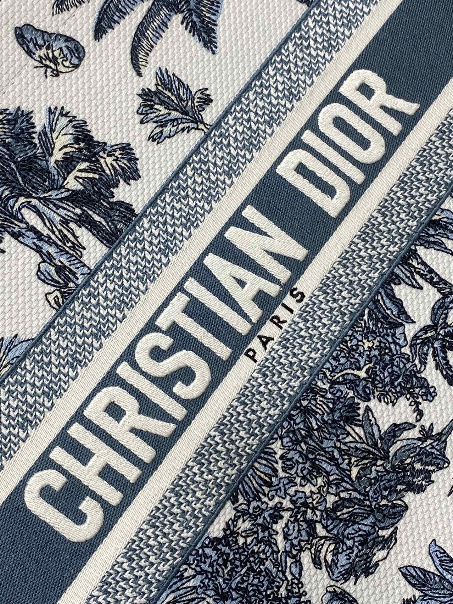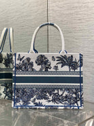 CD Medium Dior Book Tote Tropical Pattern Slate Blue White Cotton