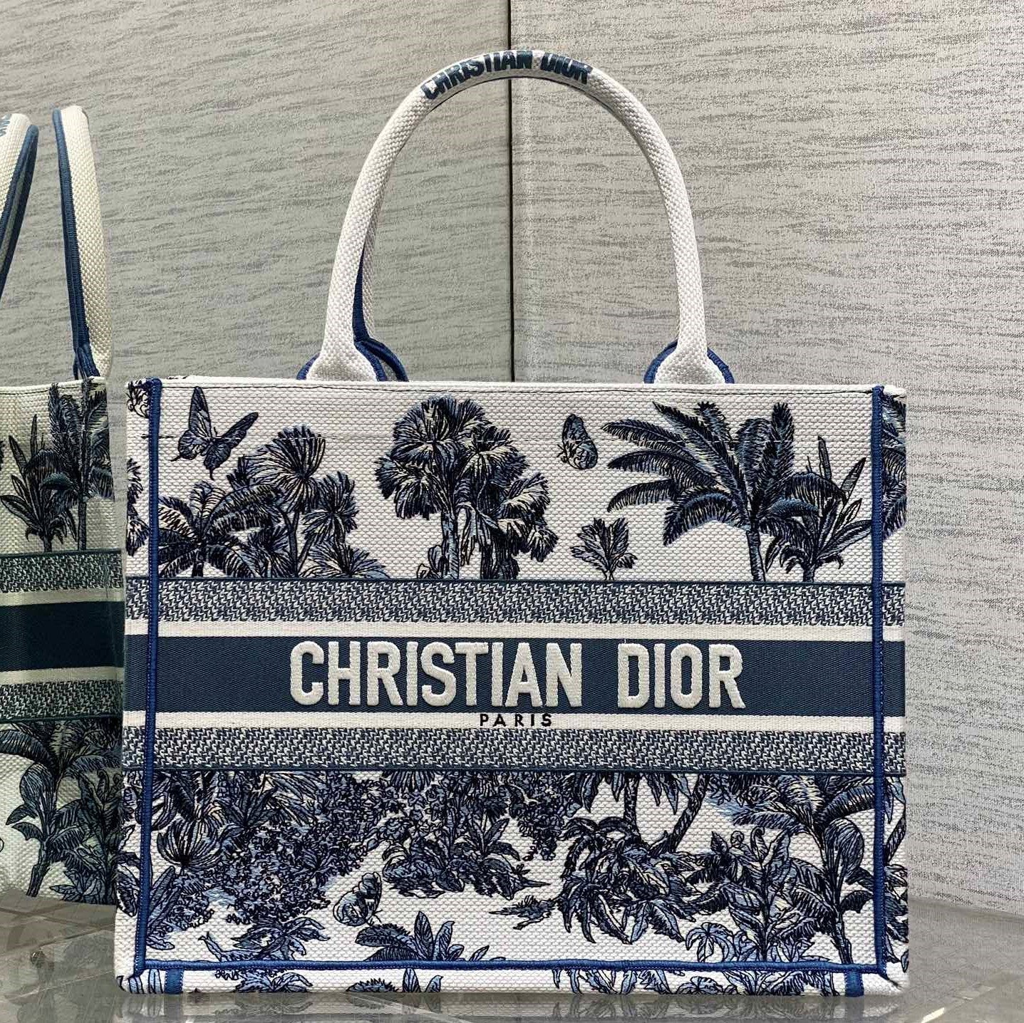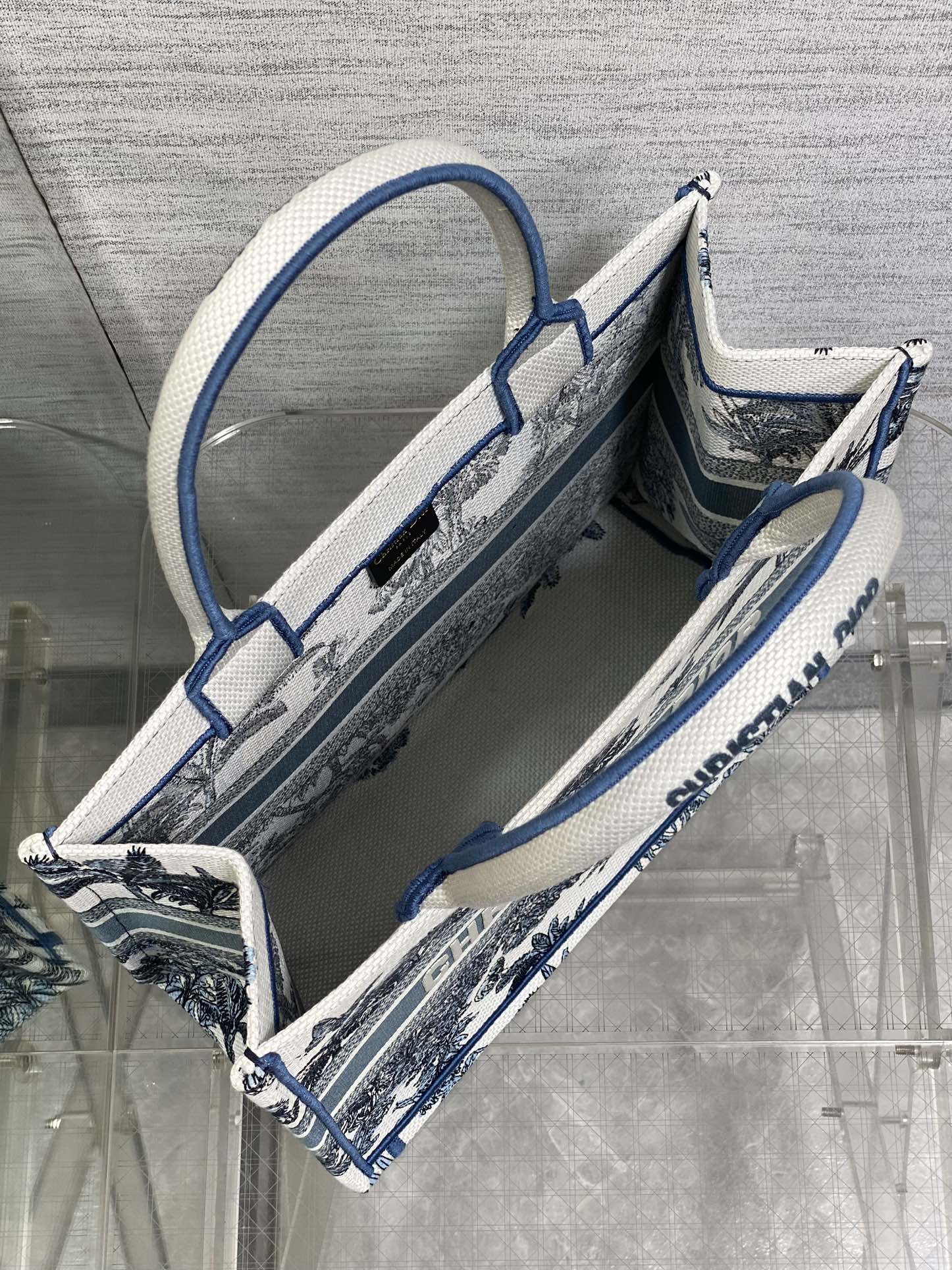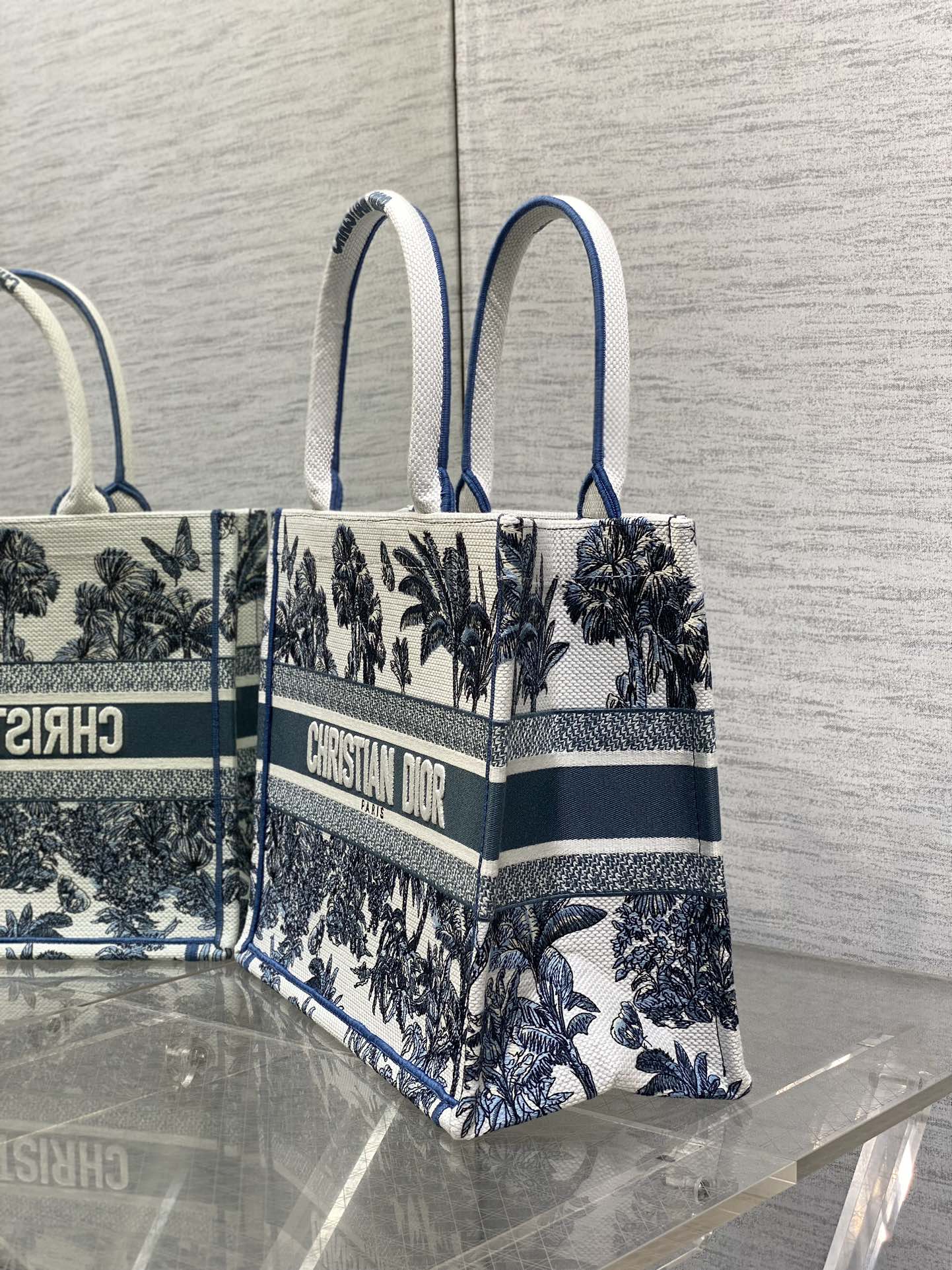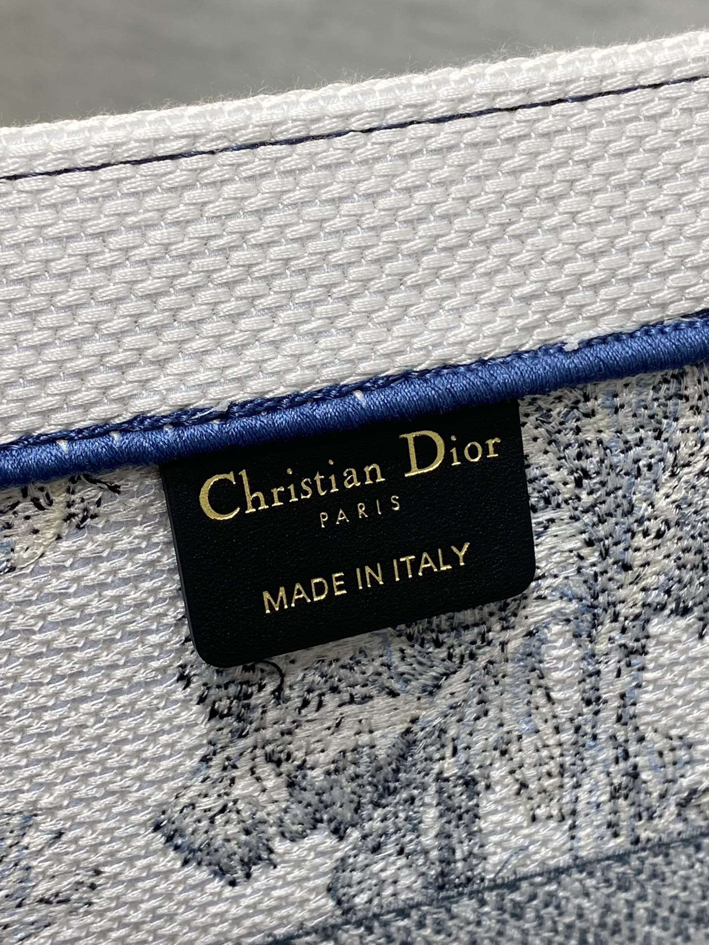 CD Medium Dior Book Tote Tropical Pattern Slate Blue White Cotton