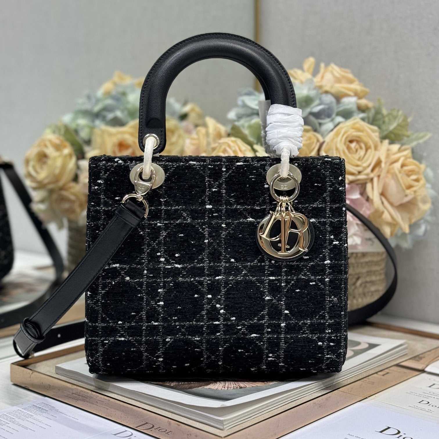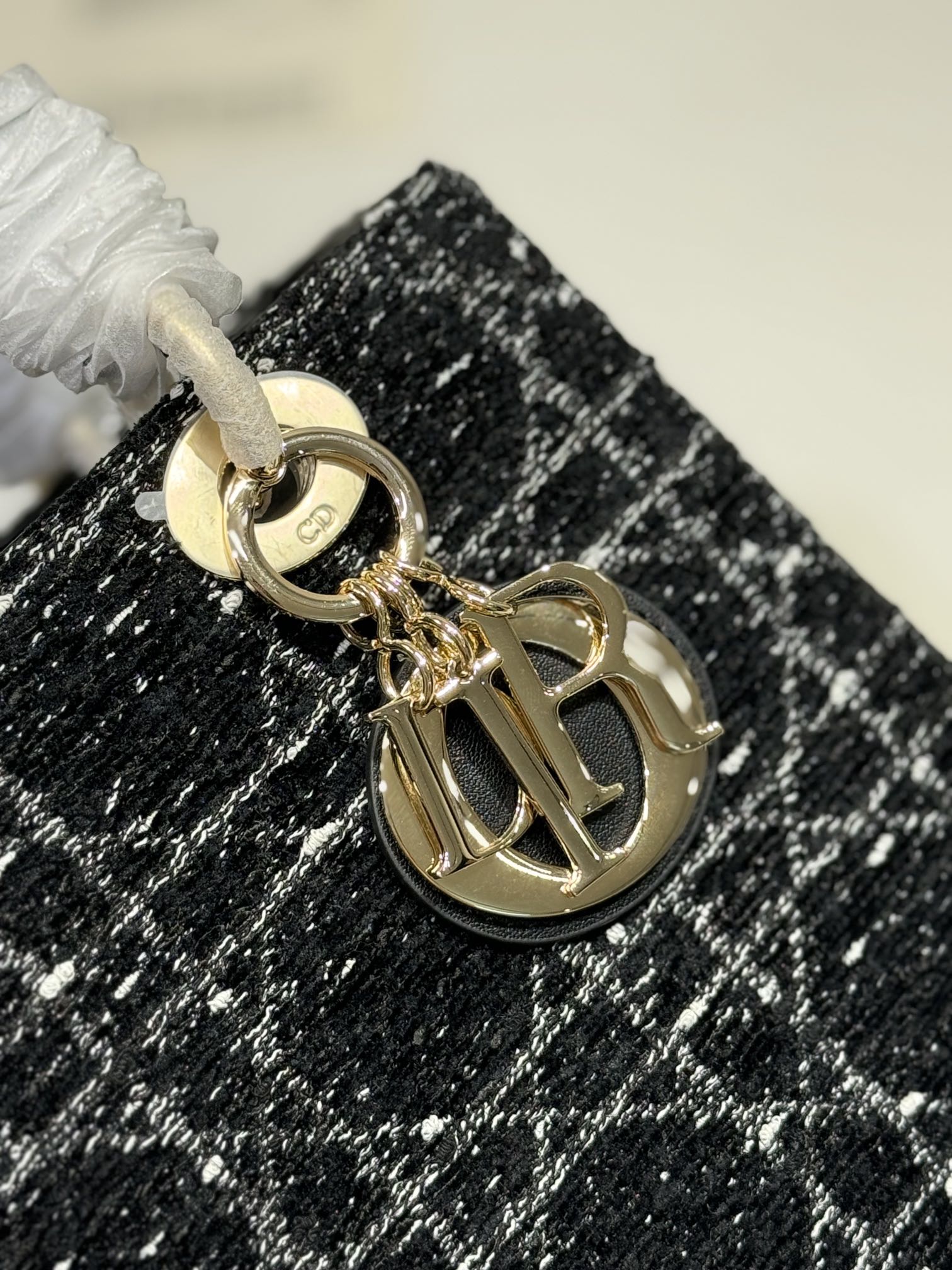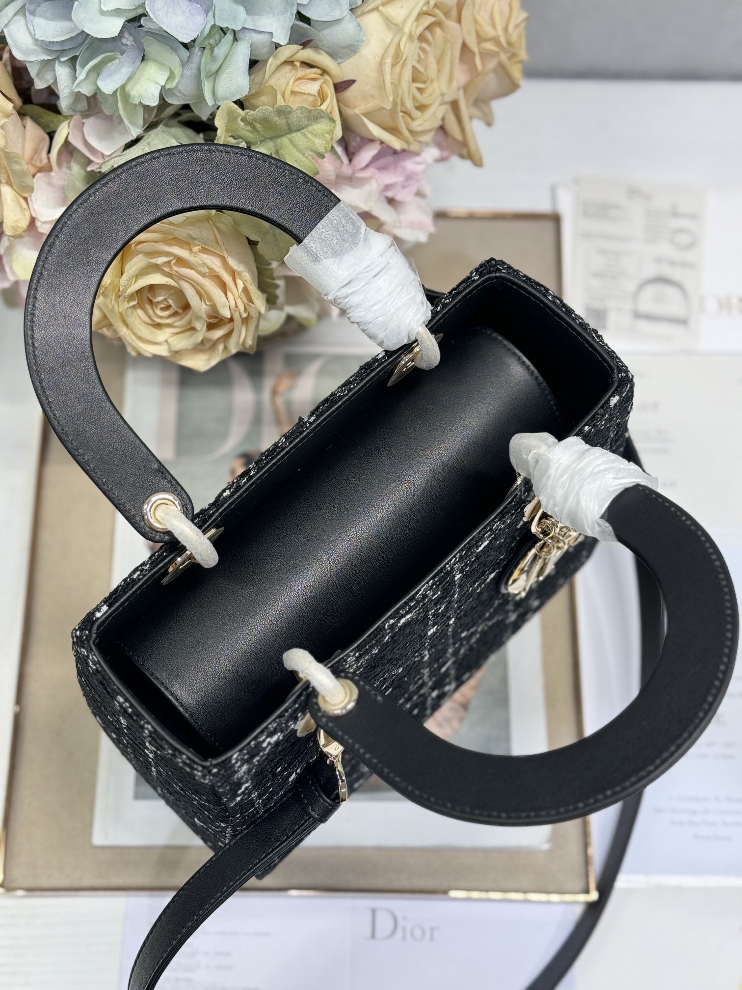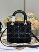 CD Medium Lady 24 Black Lambskin Black White Canvas