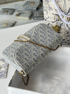 CD Medium Saddle Pouch with Chain 21.5cm White Grey Jacquard Cowhide GHW
