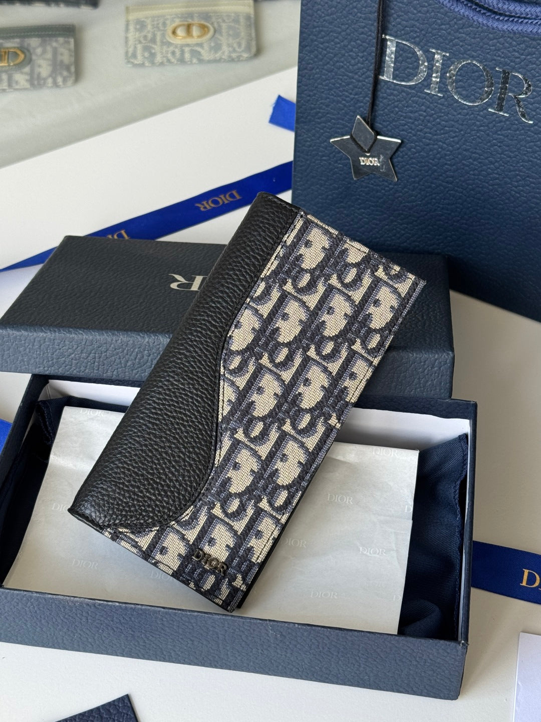 CD Saddle Long Vertical Wallet Black Beige Cowhide & Jacquard