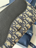 CD Saddle Long Zipped Wallet Black Beige Grain Cowhide & Jacquard