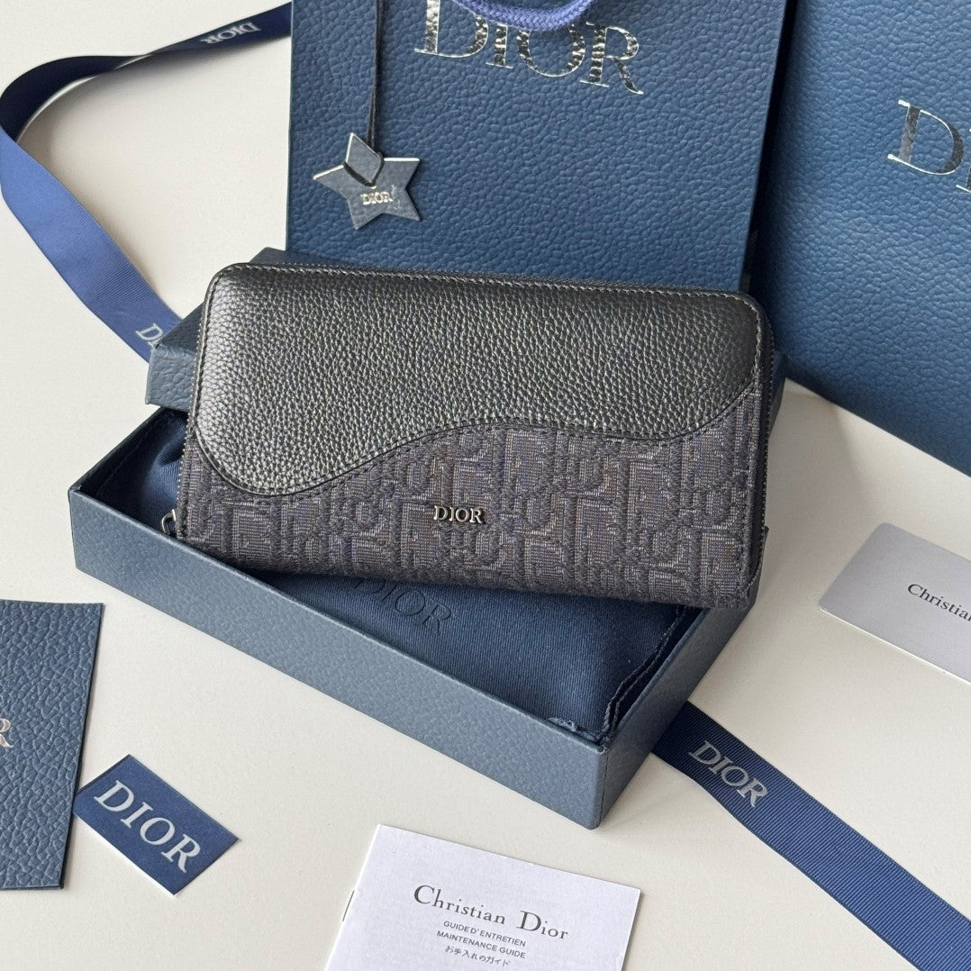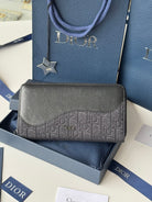 CD Saddle Long Zipped Wallet Black Grain Cowhide & Jacquard