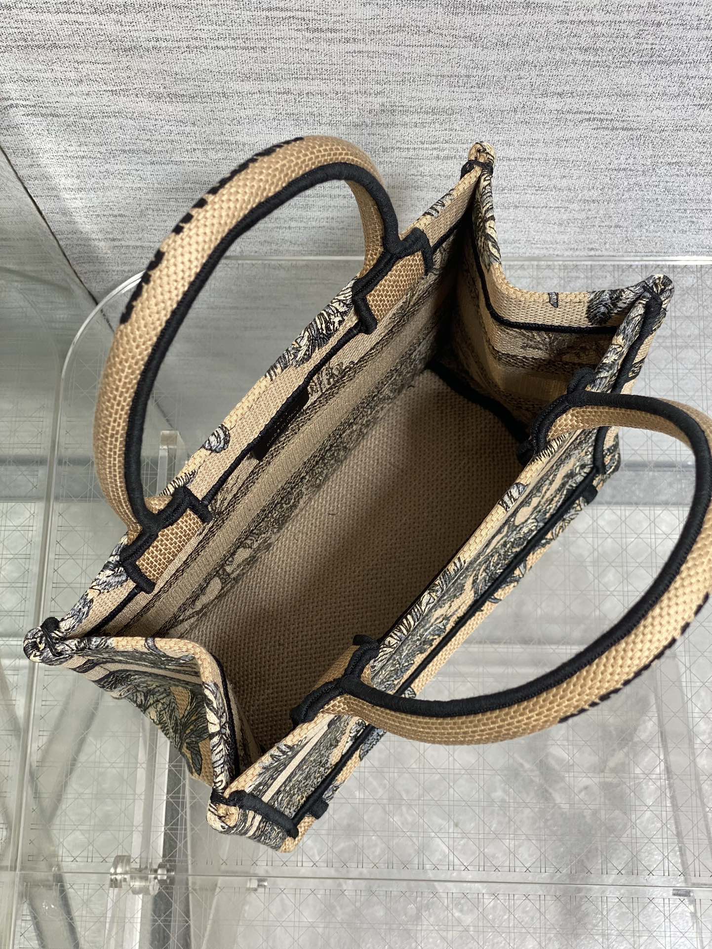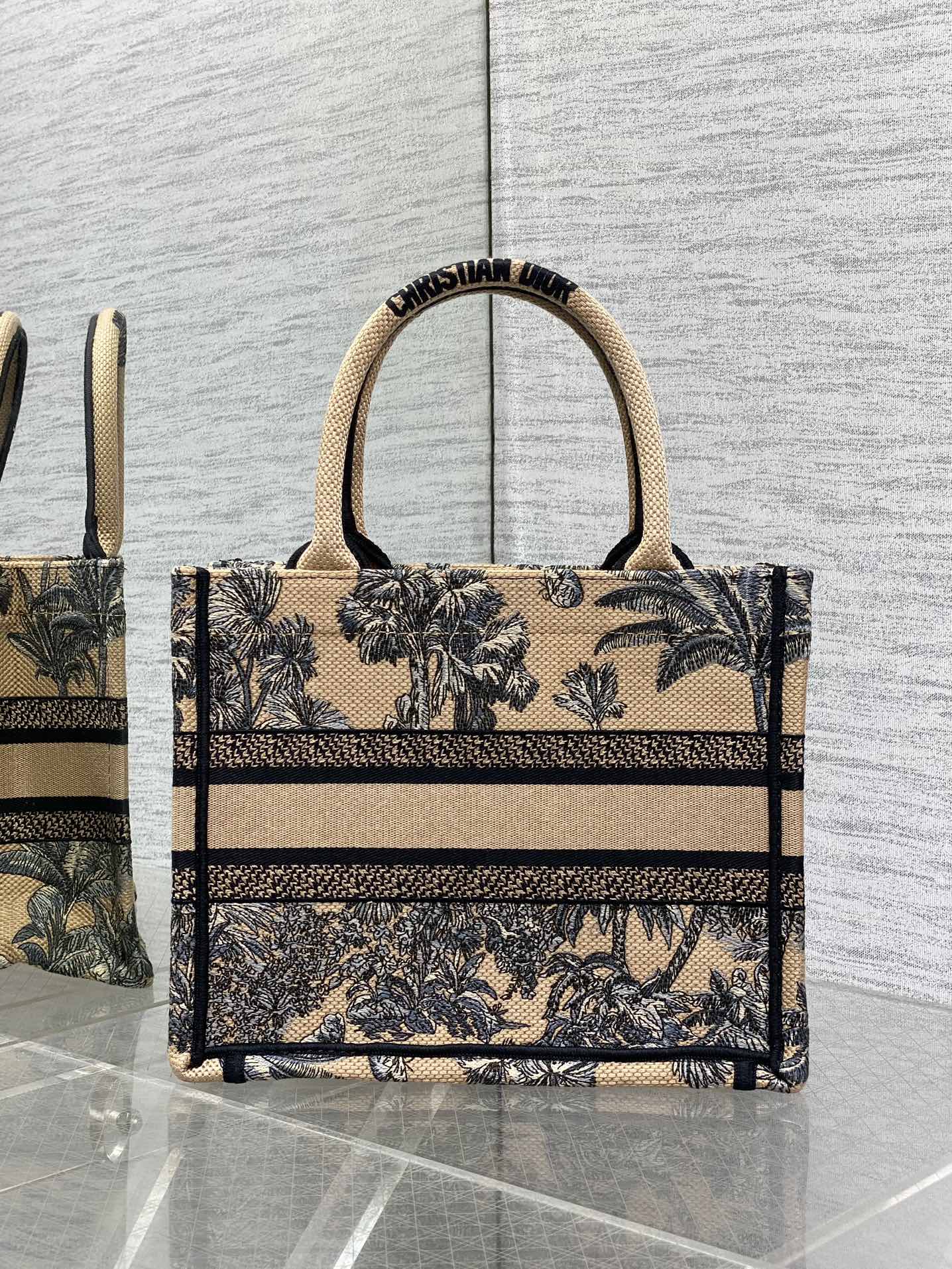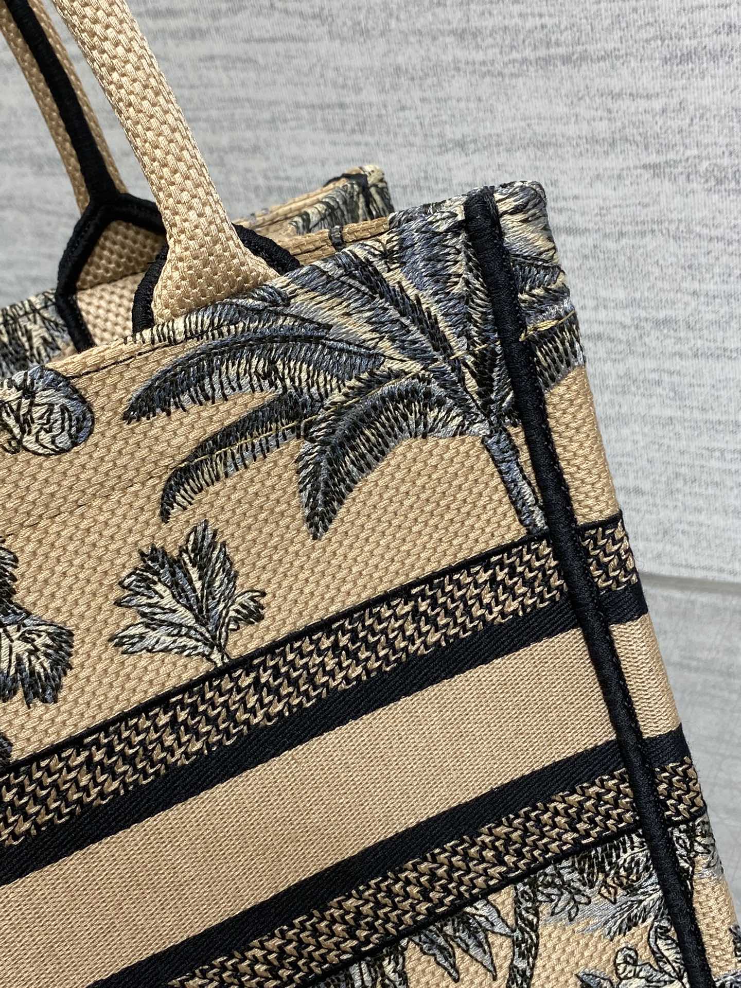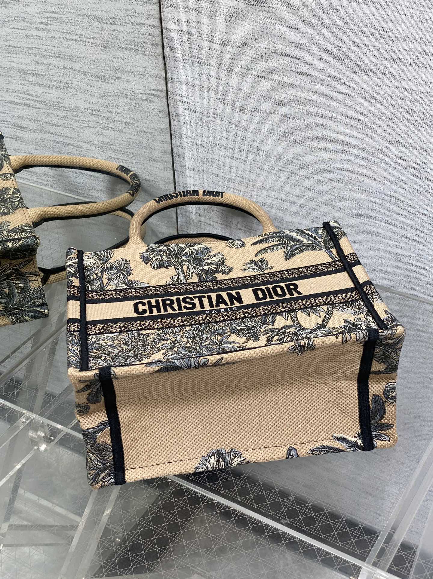 CD Small Dior Book Tote Tropical Pattern Black Beige Cotton