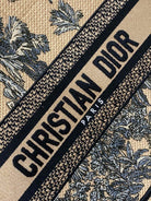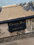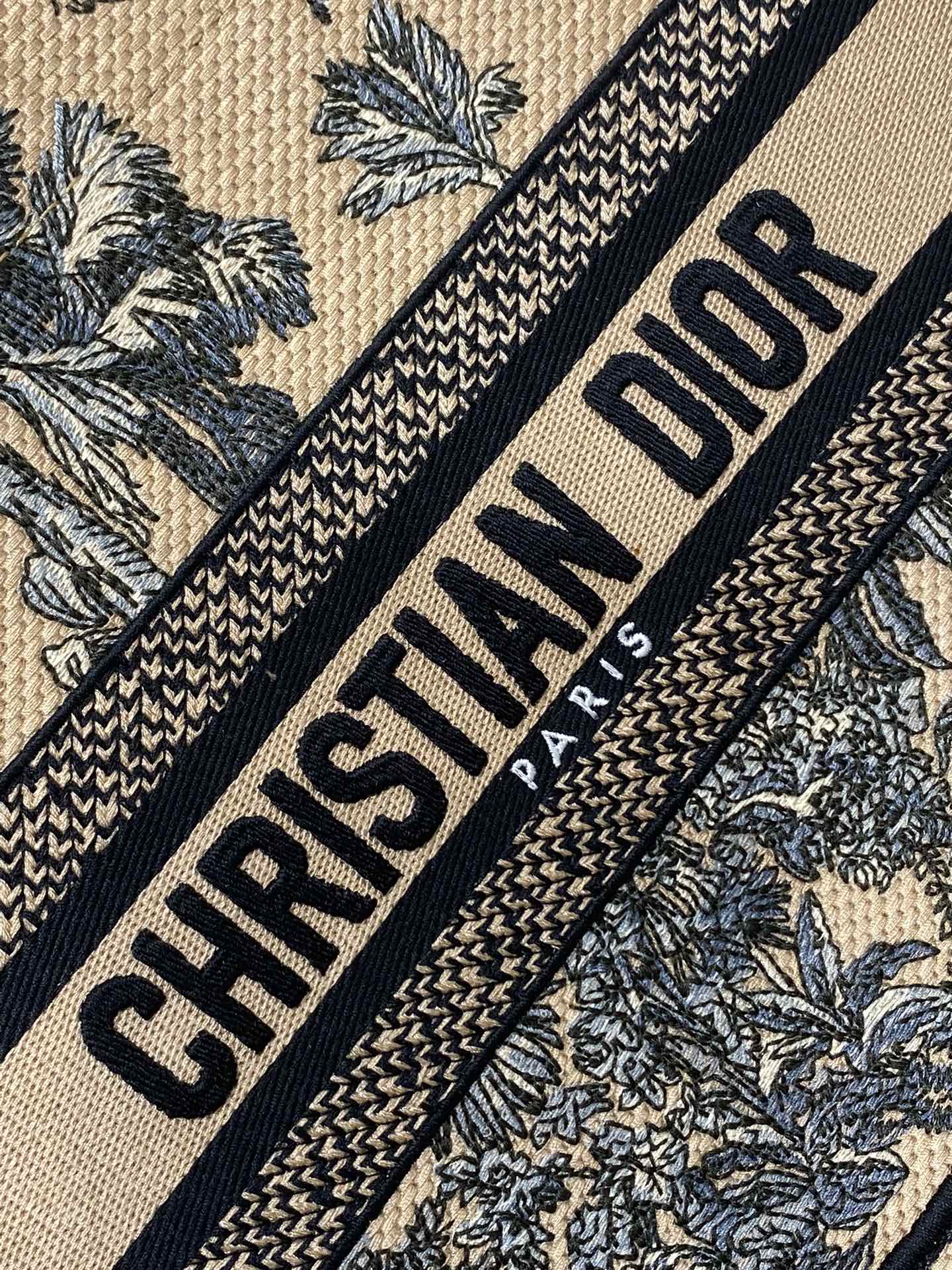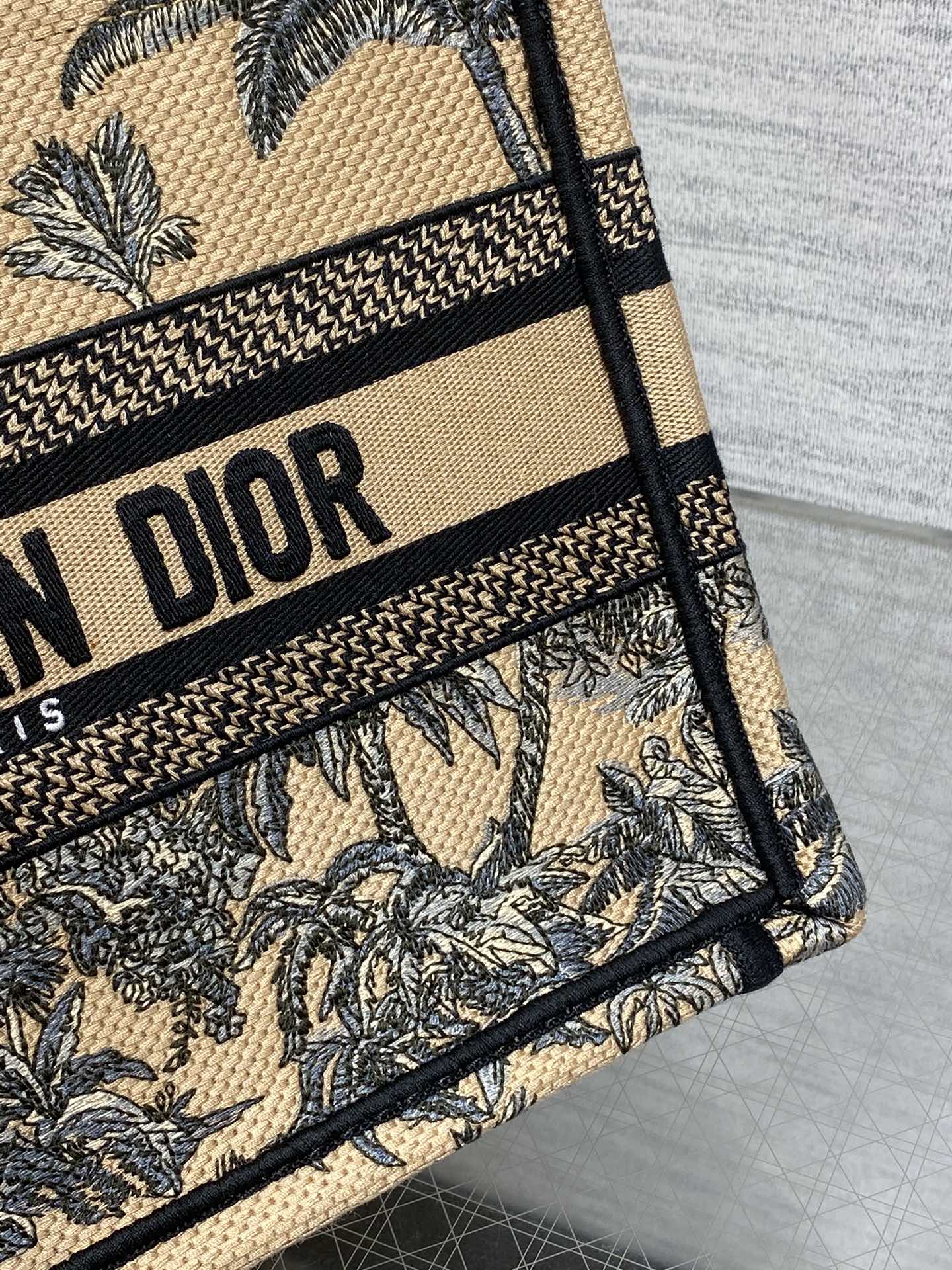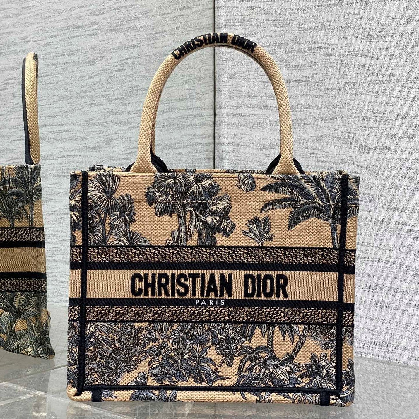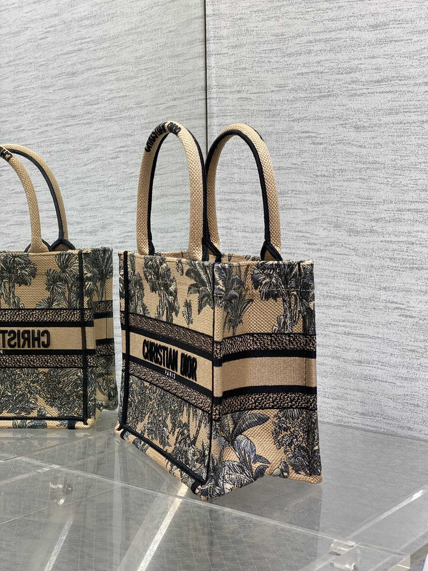 CD Small Dior Book Tote Tropical Pattern Black Beige Cotton