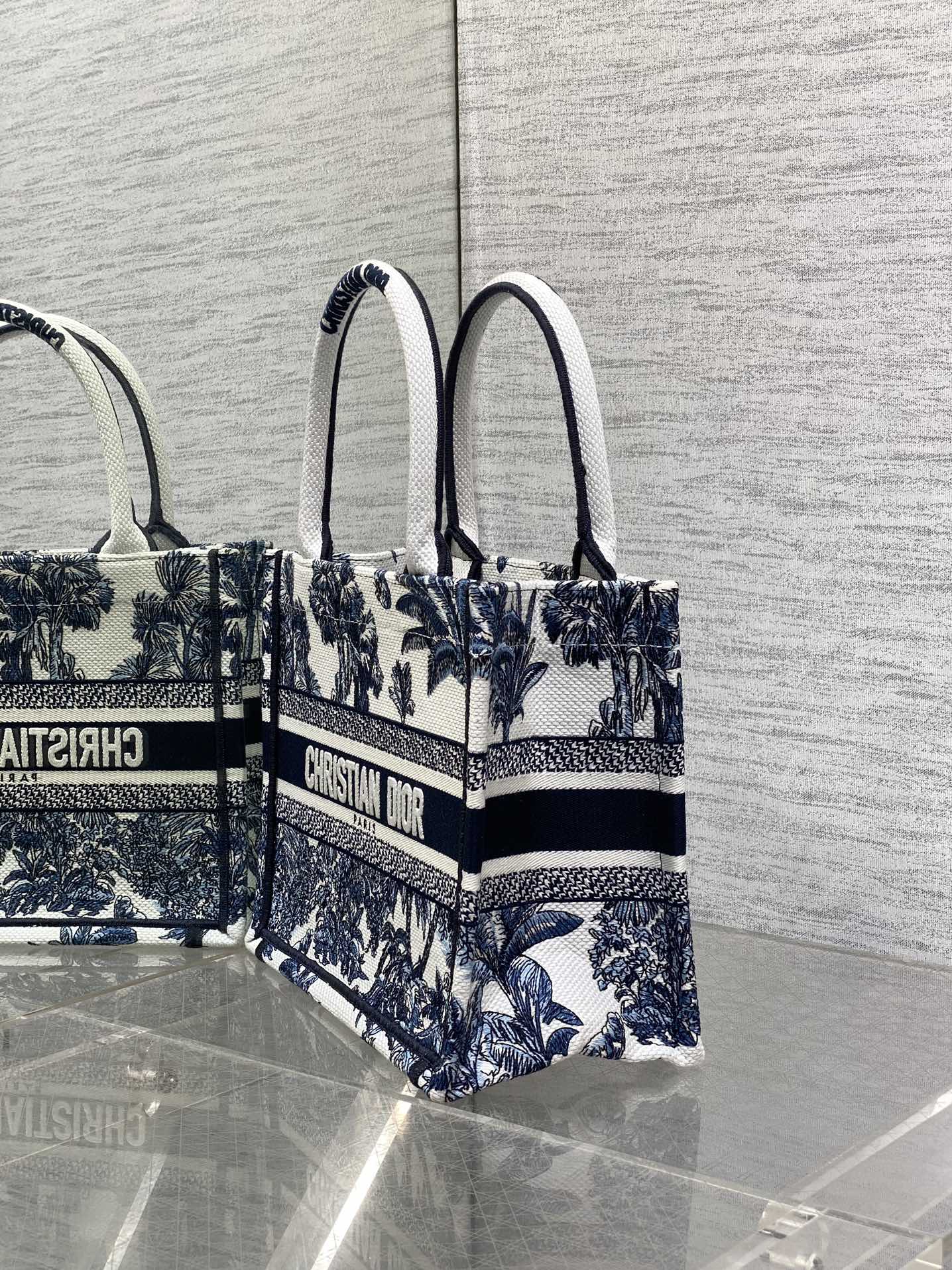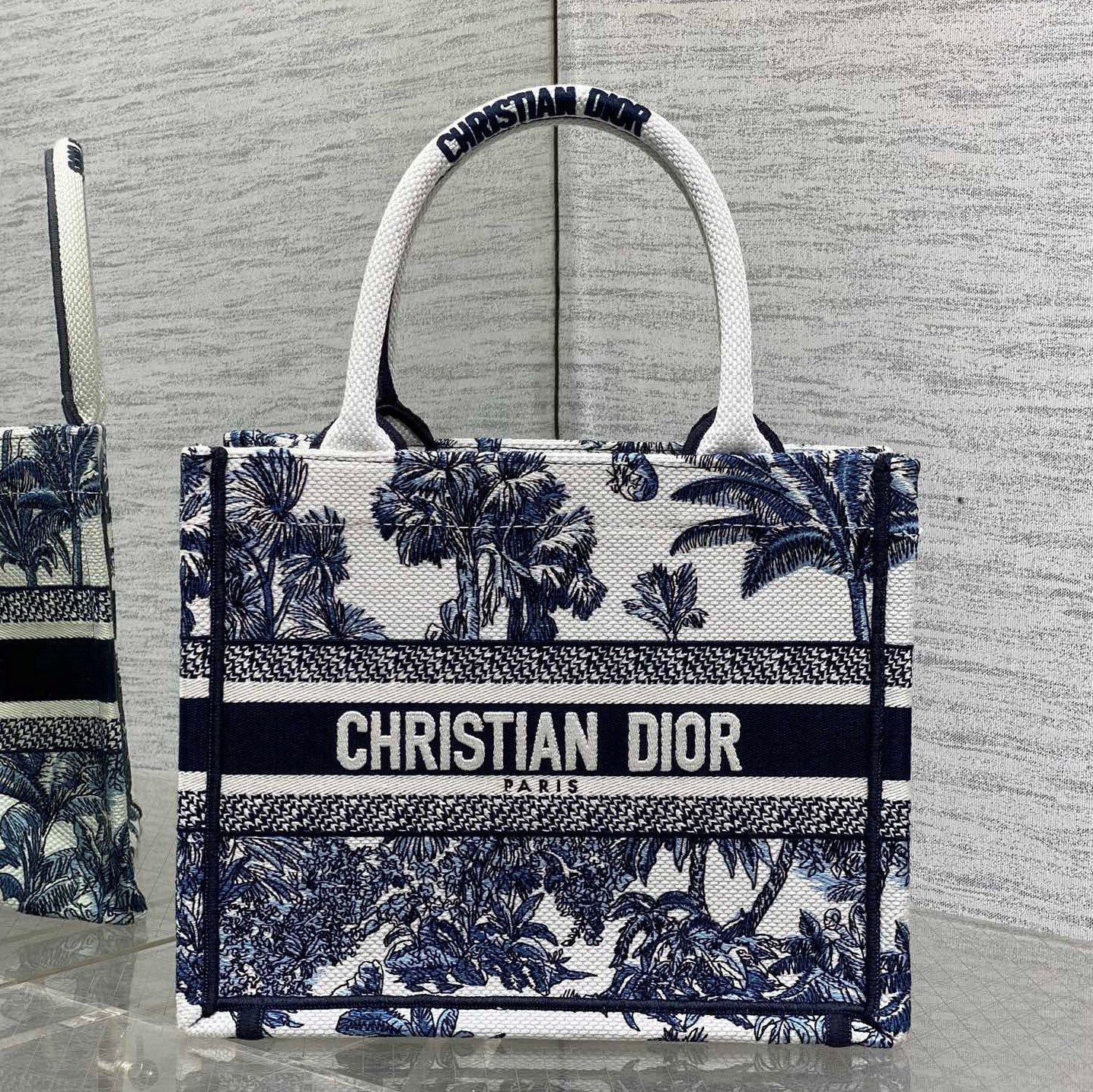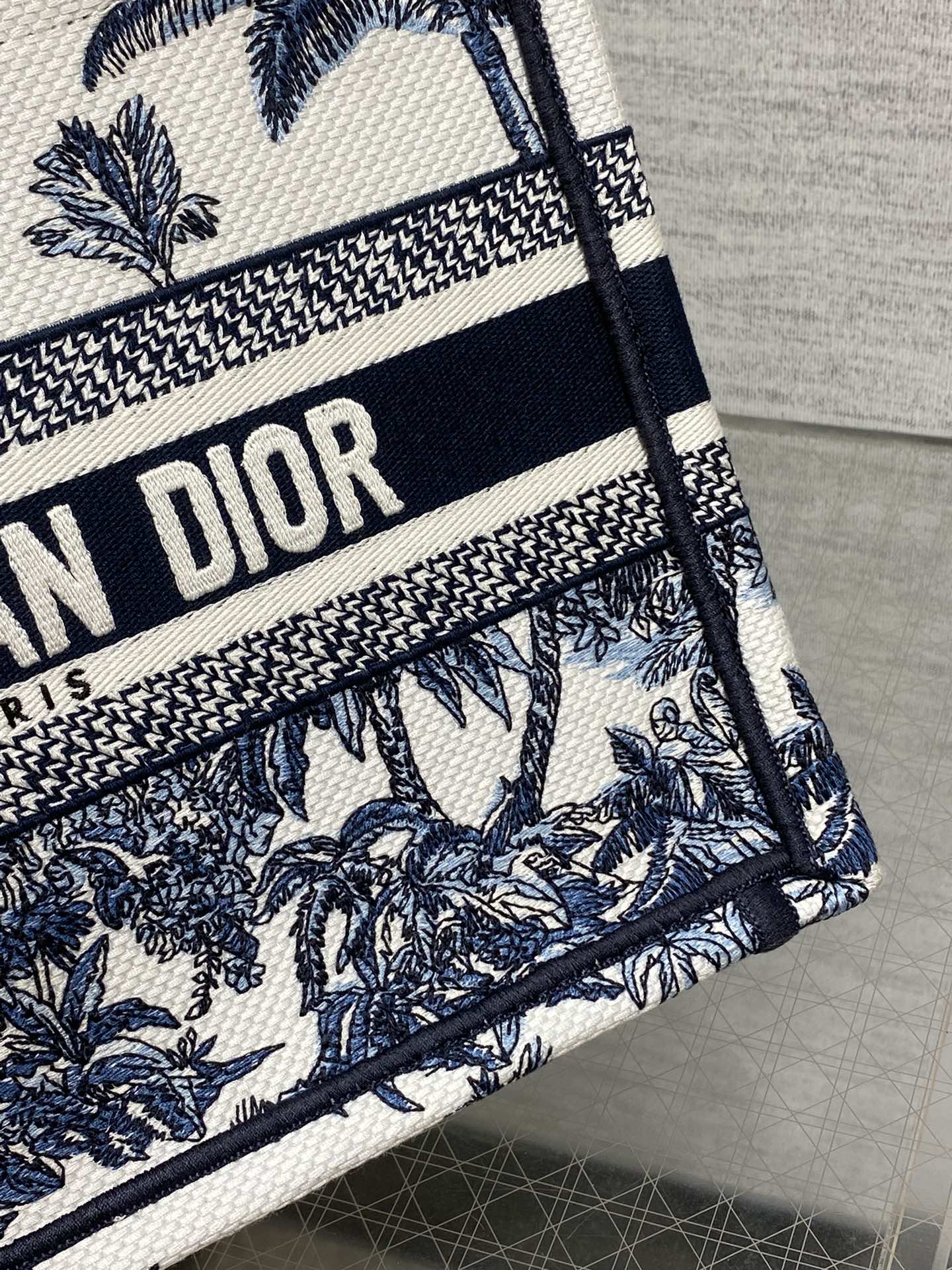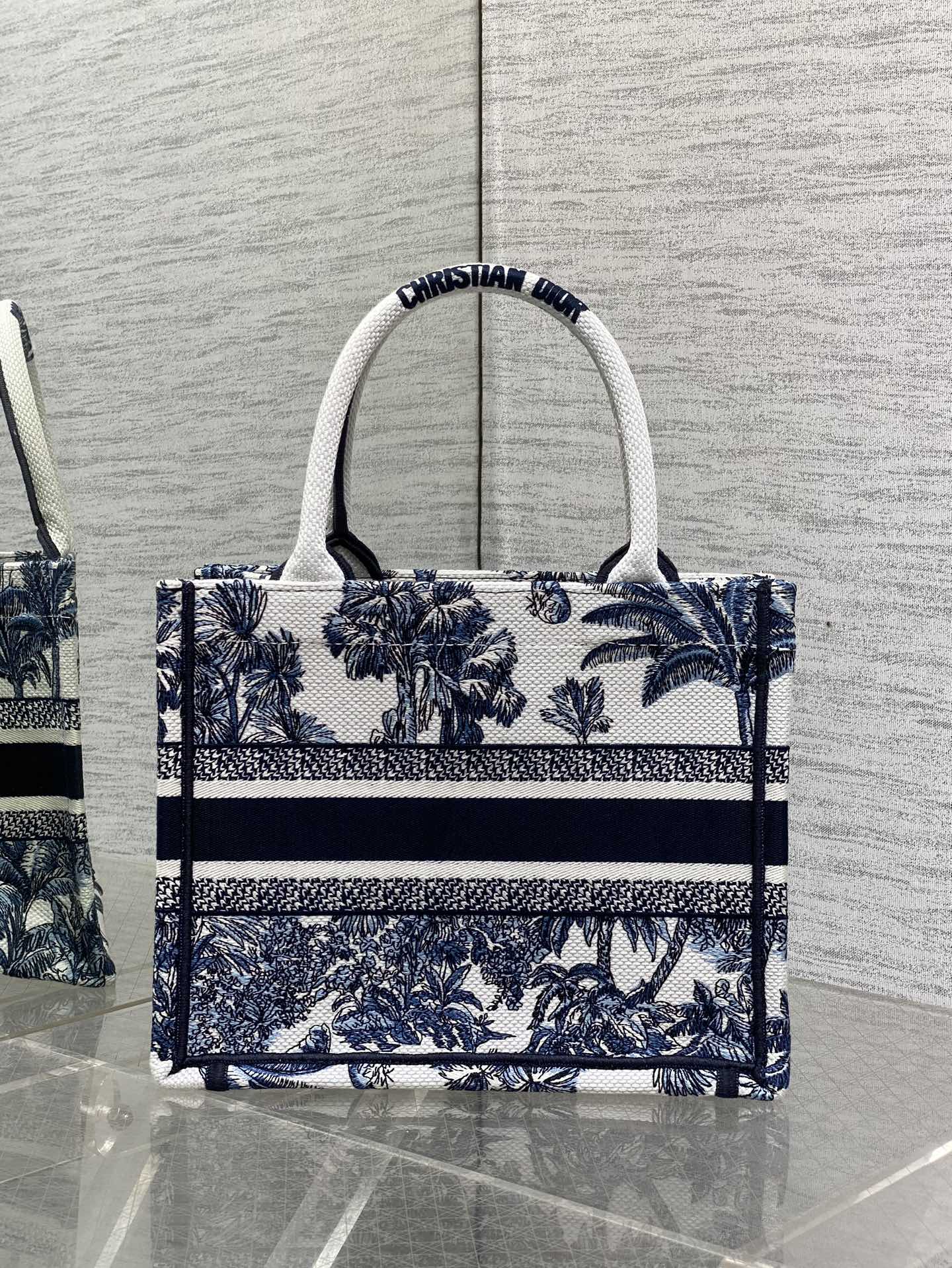 CD Small Dior Book Tote Tropical Pattern Slate Blue White Black Cotton