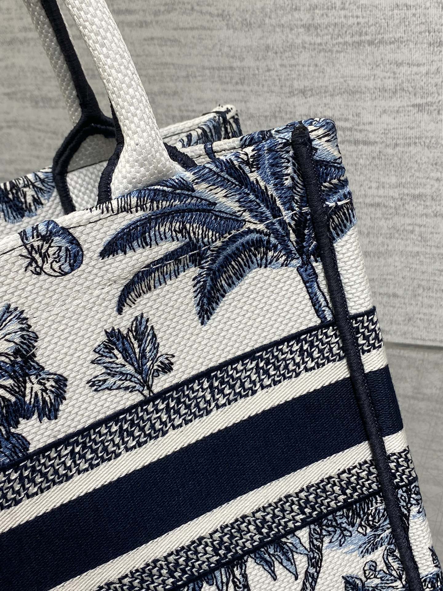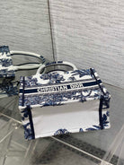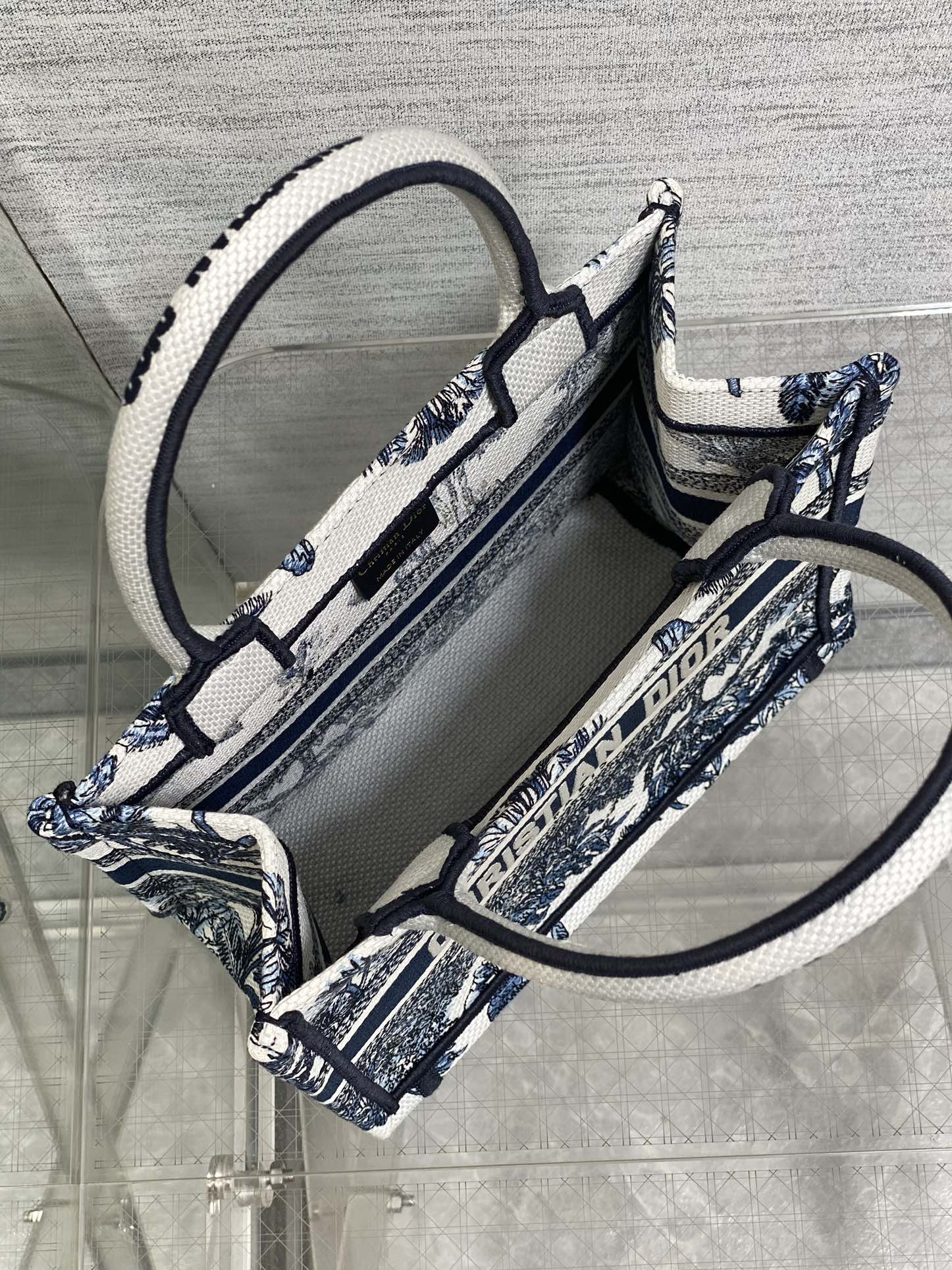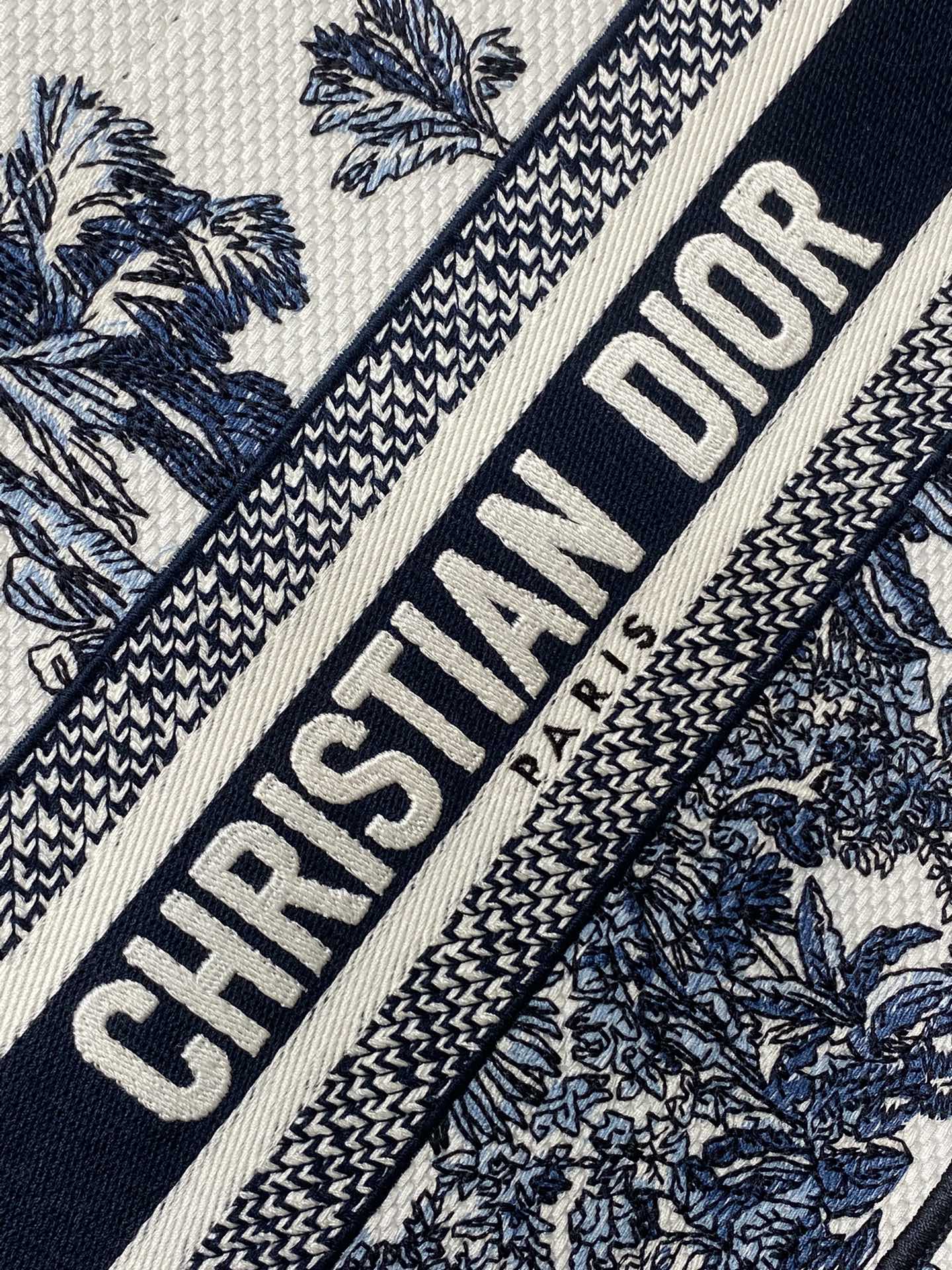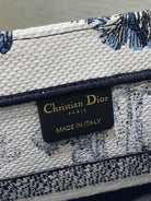 CD Small Dior Book Tote Tropical Pattern Slate Blue White Black Cotton