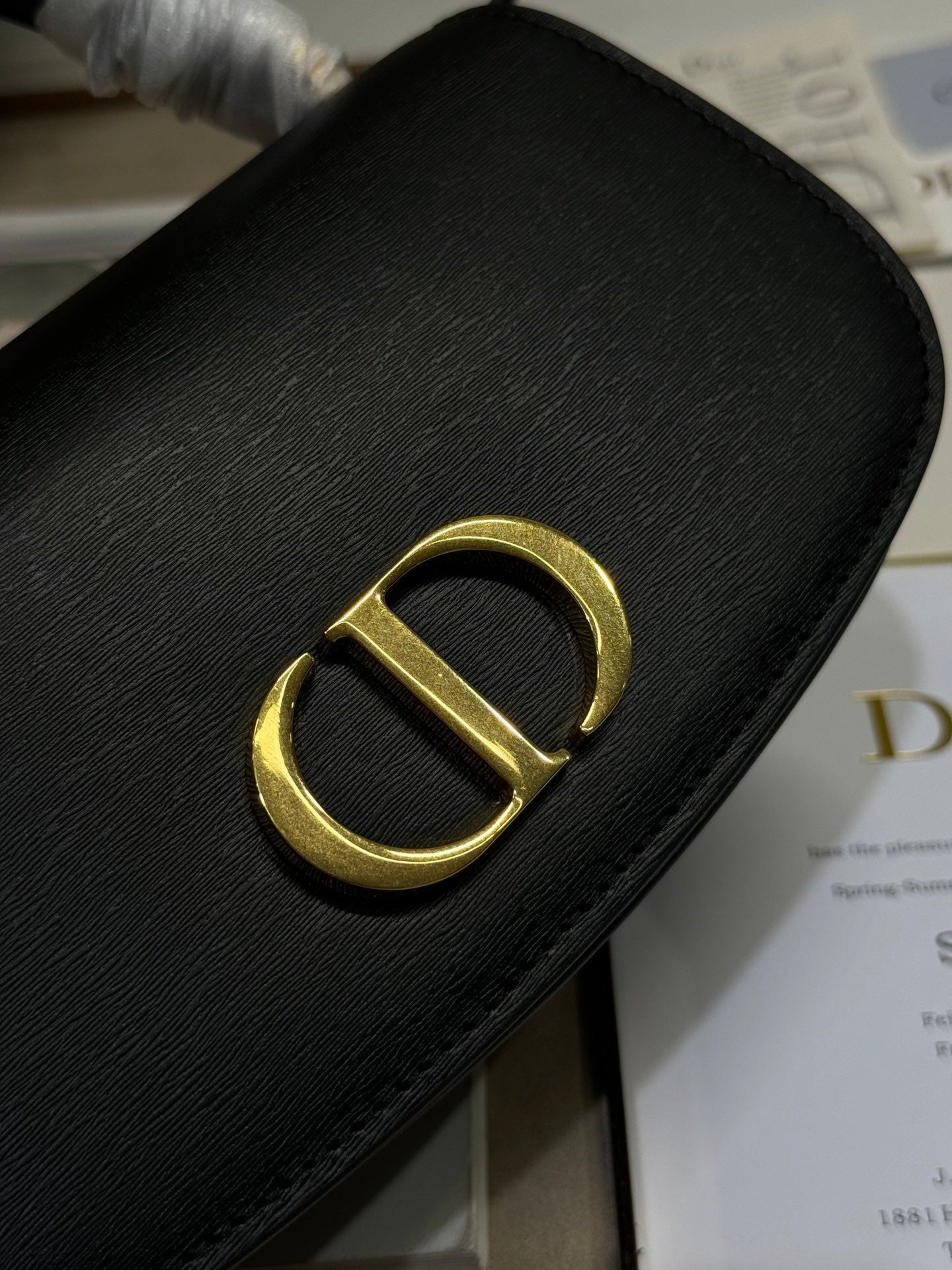 SMALL 19 MONTAIGNE AVENUE TOP HANDLE BAG BLACK SMOOTH CALFSKIN 221147