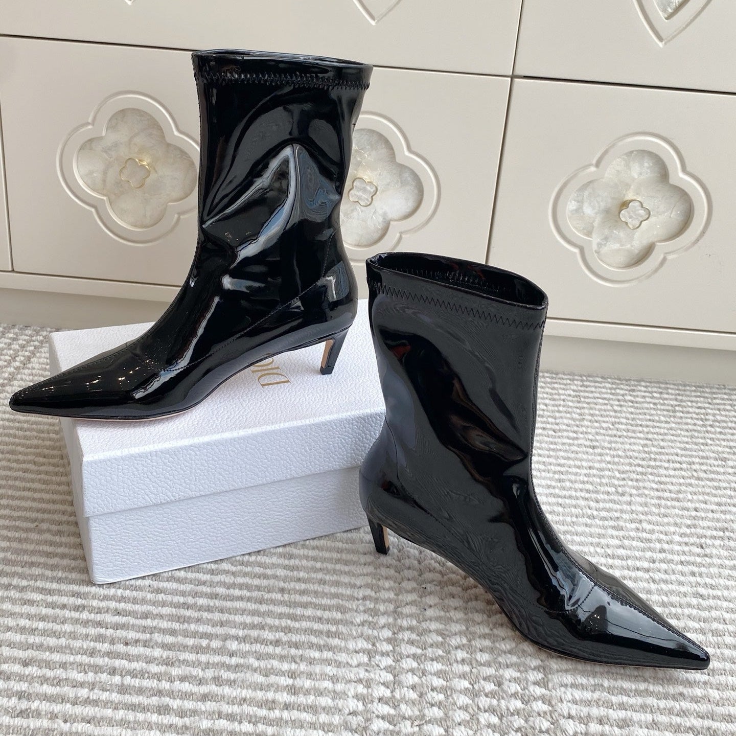Dior 2025 Tribales Heeled Ankle Boot 80mm Black White Patent Leather 501197