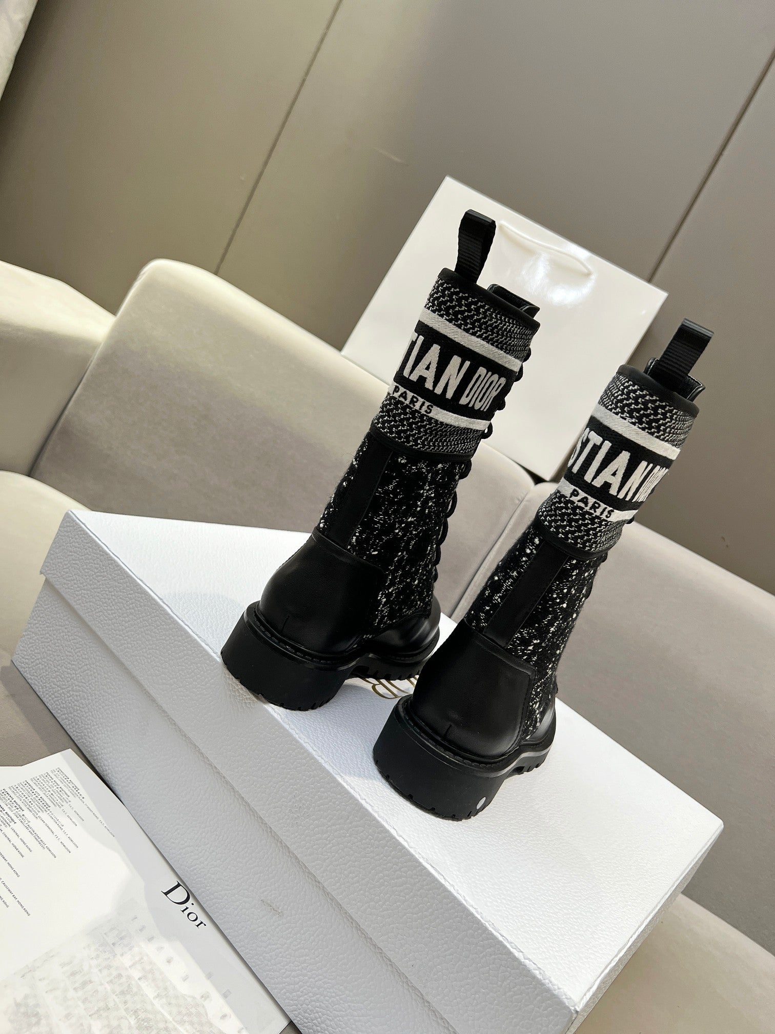 CD D-Major Ankle Boot In Black Mix White Tweed And Lambskin 107725