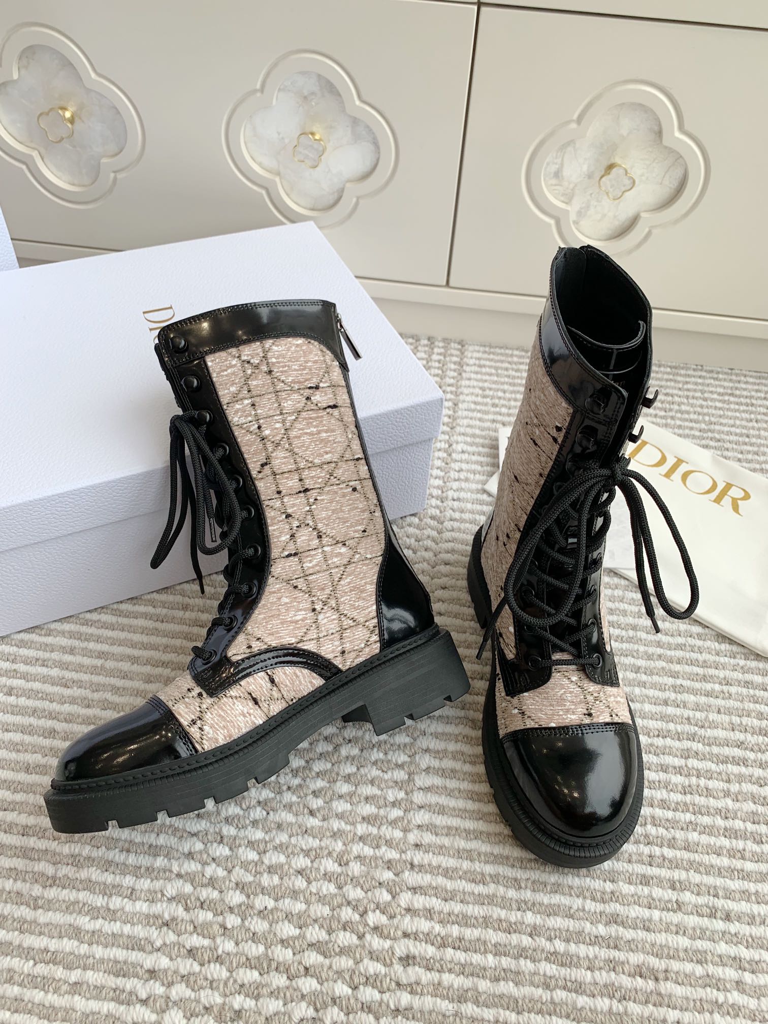 CD D-Unit Ankle Boot In Beige Mix Black Tweed Fabric And Glossy Cowhide 105088