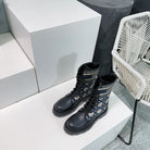 CD Major Ankle Boots Black Navy Blue Calfskin And Fabric Canvas