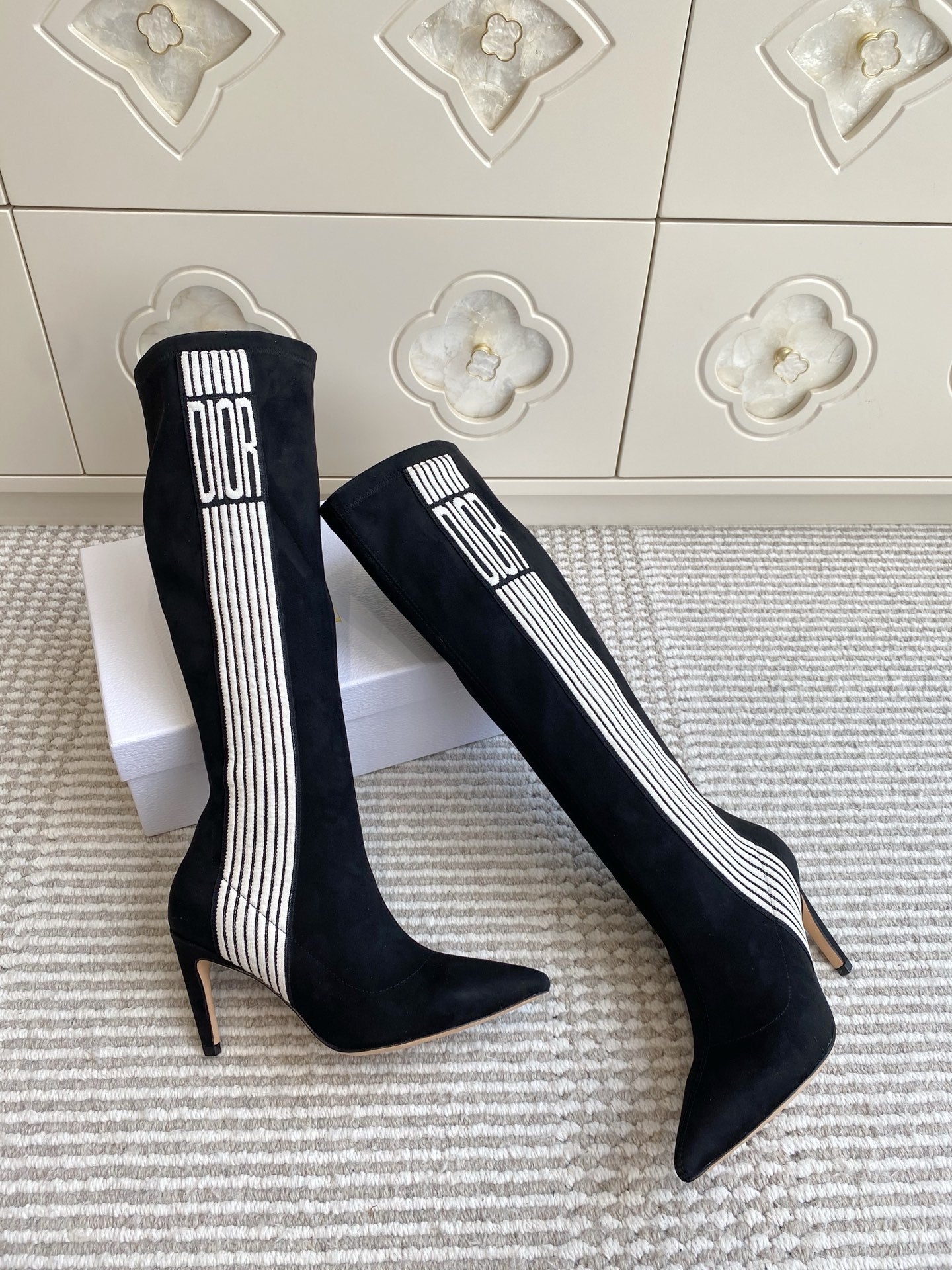 Dior 2025 Tribales Heeled Ankle High Boot 80mm Black White Suede 501198