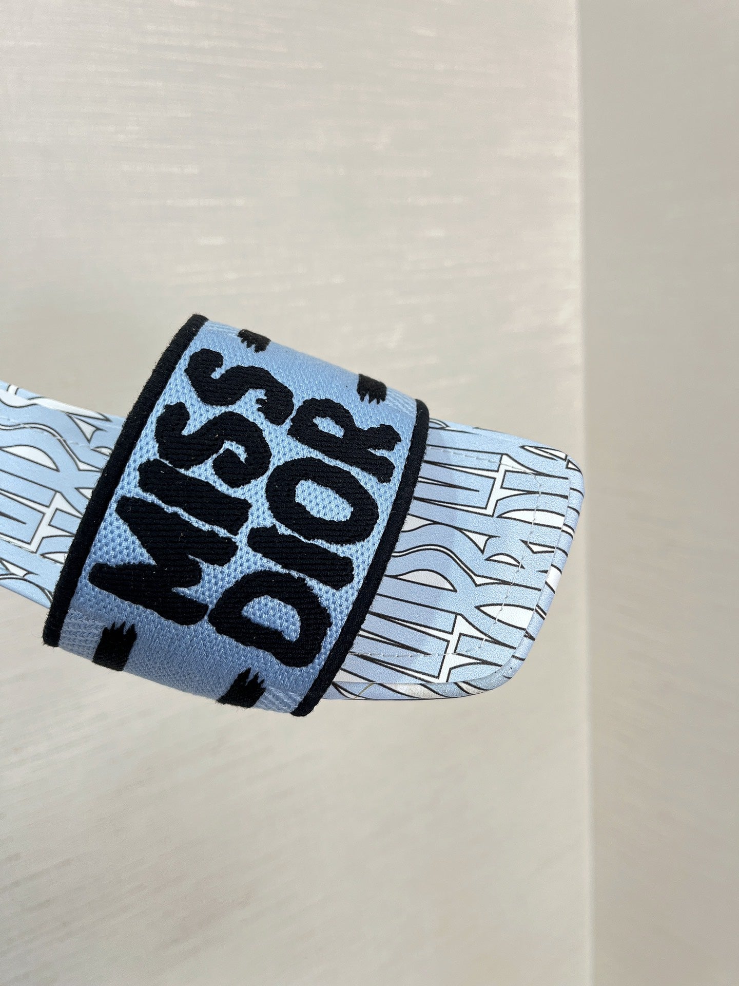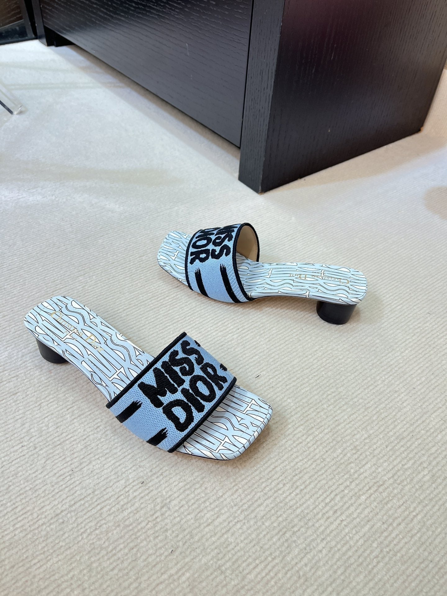 dway heeled slide 35 embroidered cotton cloud blue miss cd alllover motif