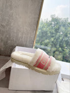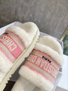 CD 25 Flat Slippers White Pink Wool 395568
