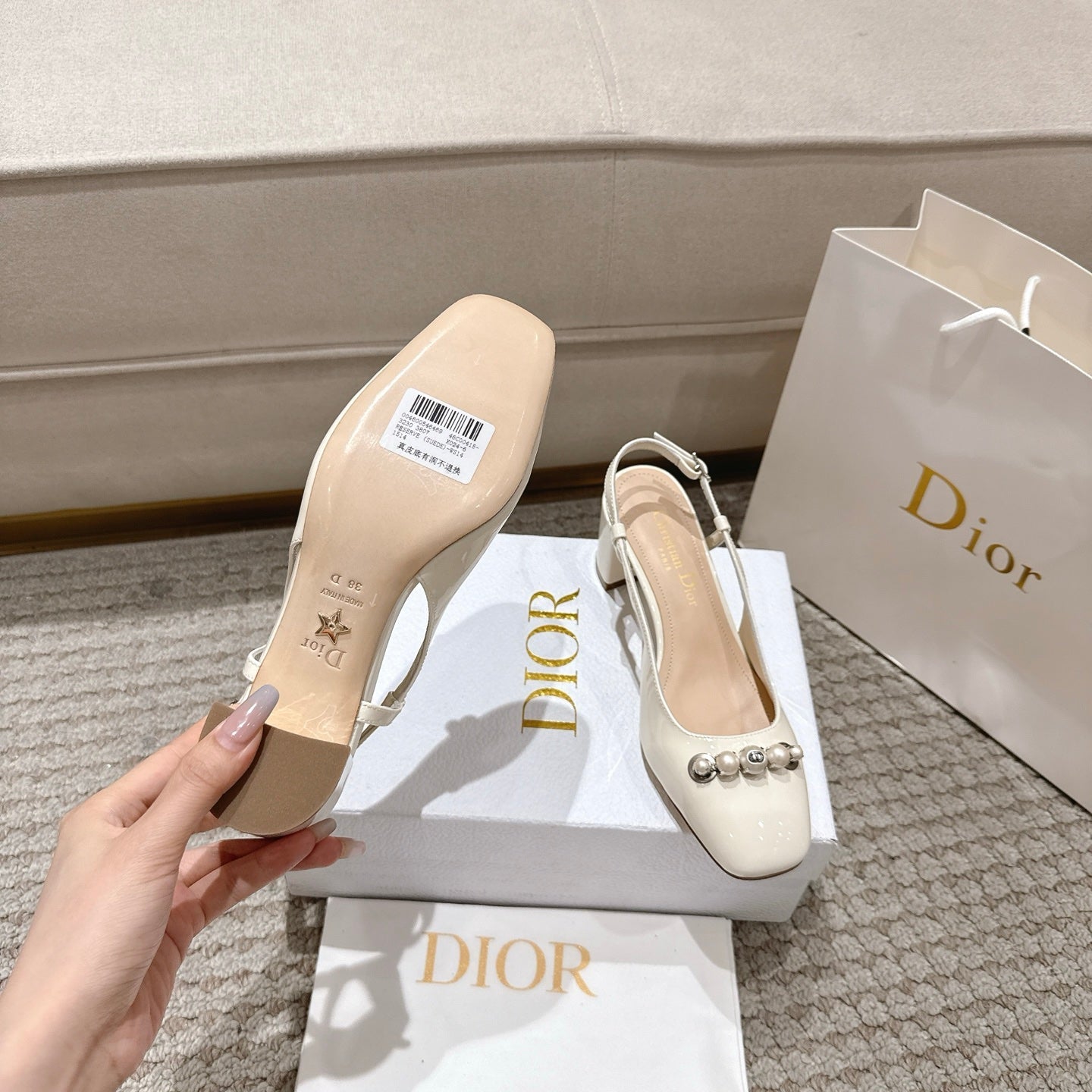 CD 25 slingback white pearls patent leather 396120