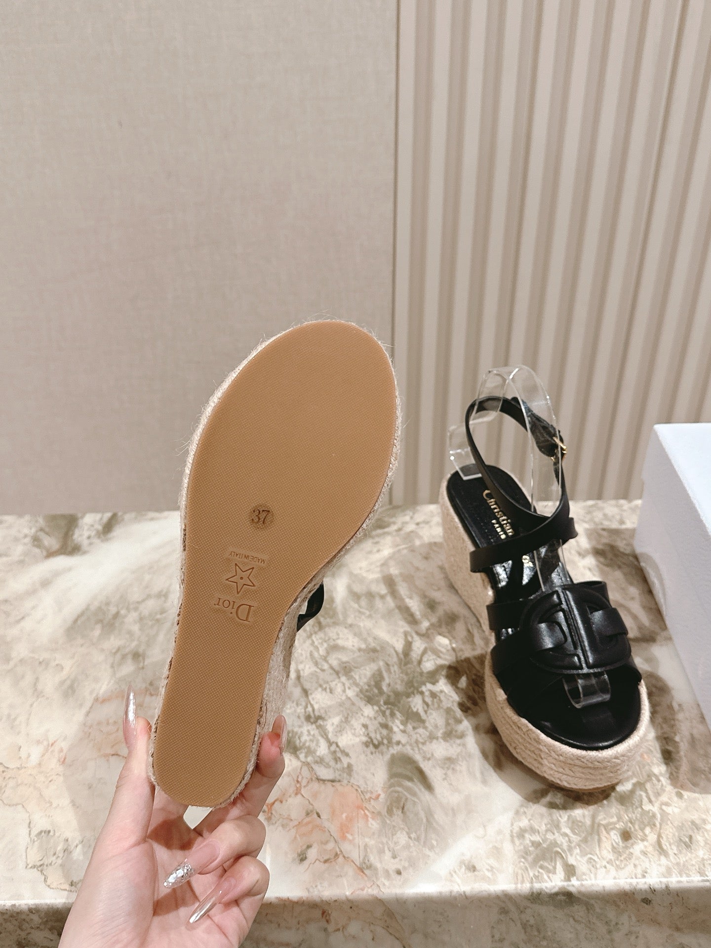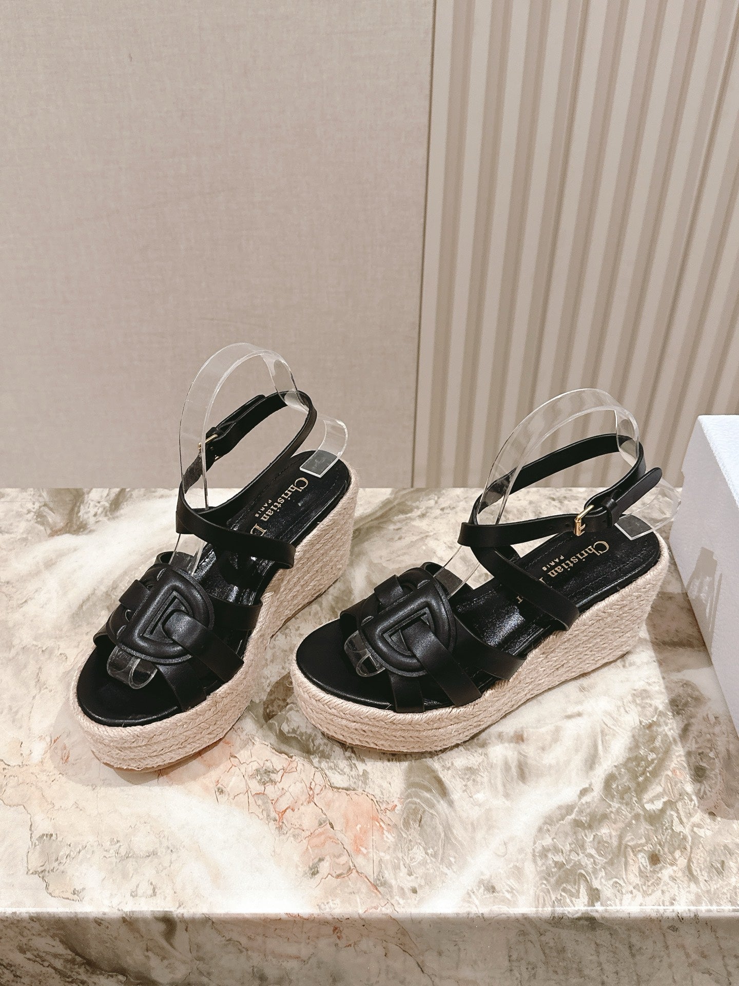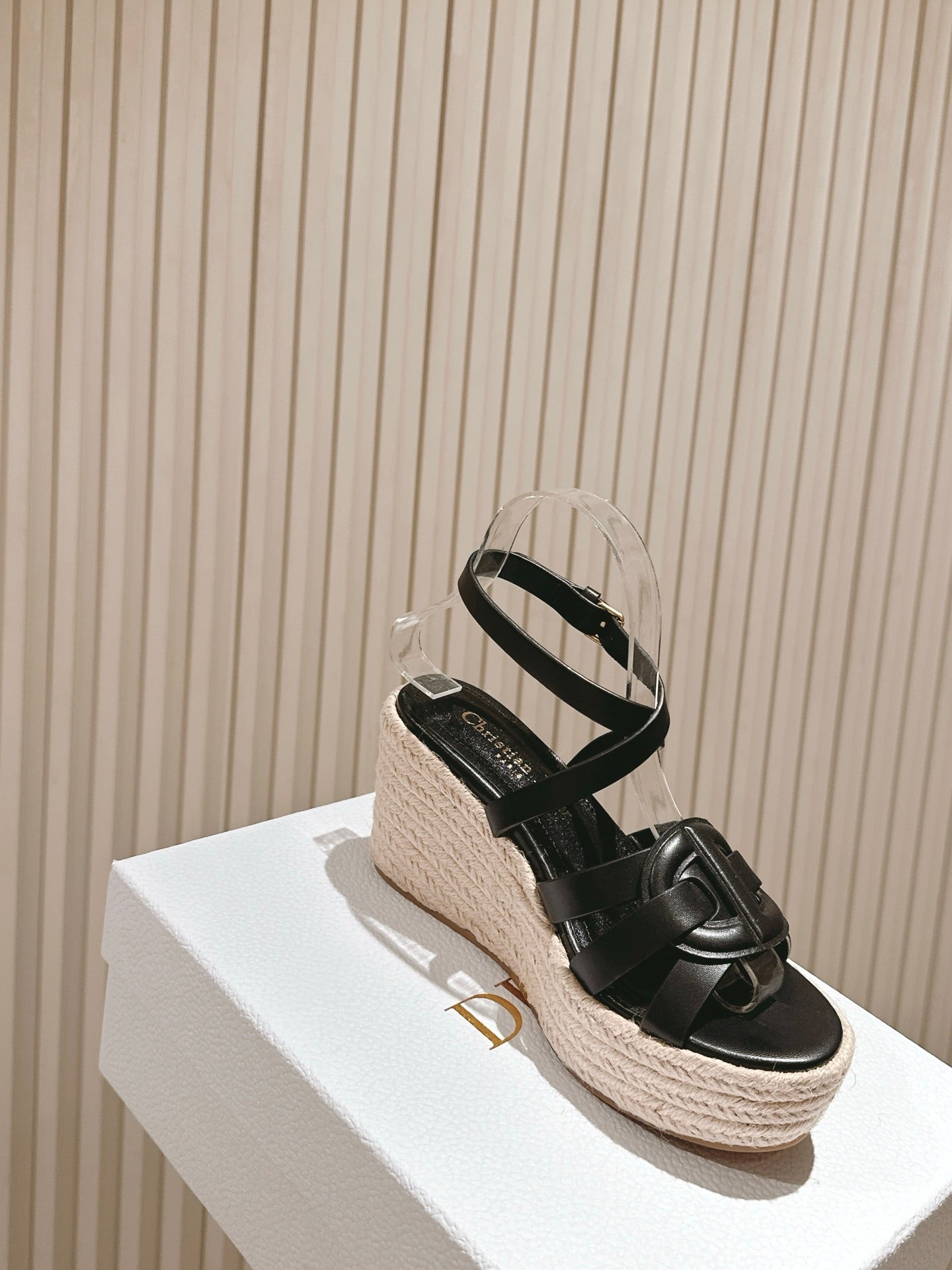 CD D-Club Wedge Sandal 85mm Black Calfskin 483082