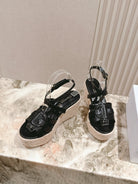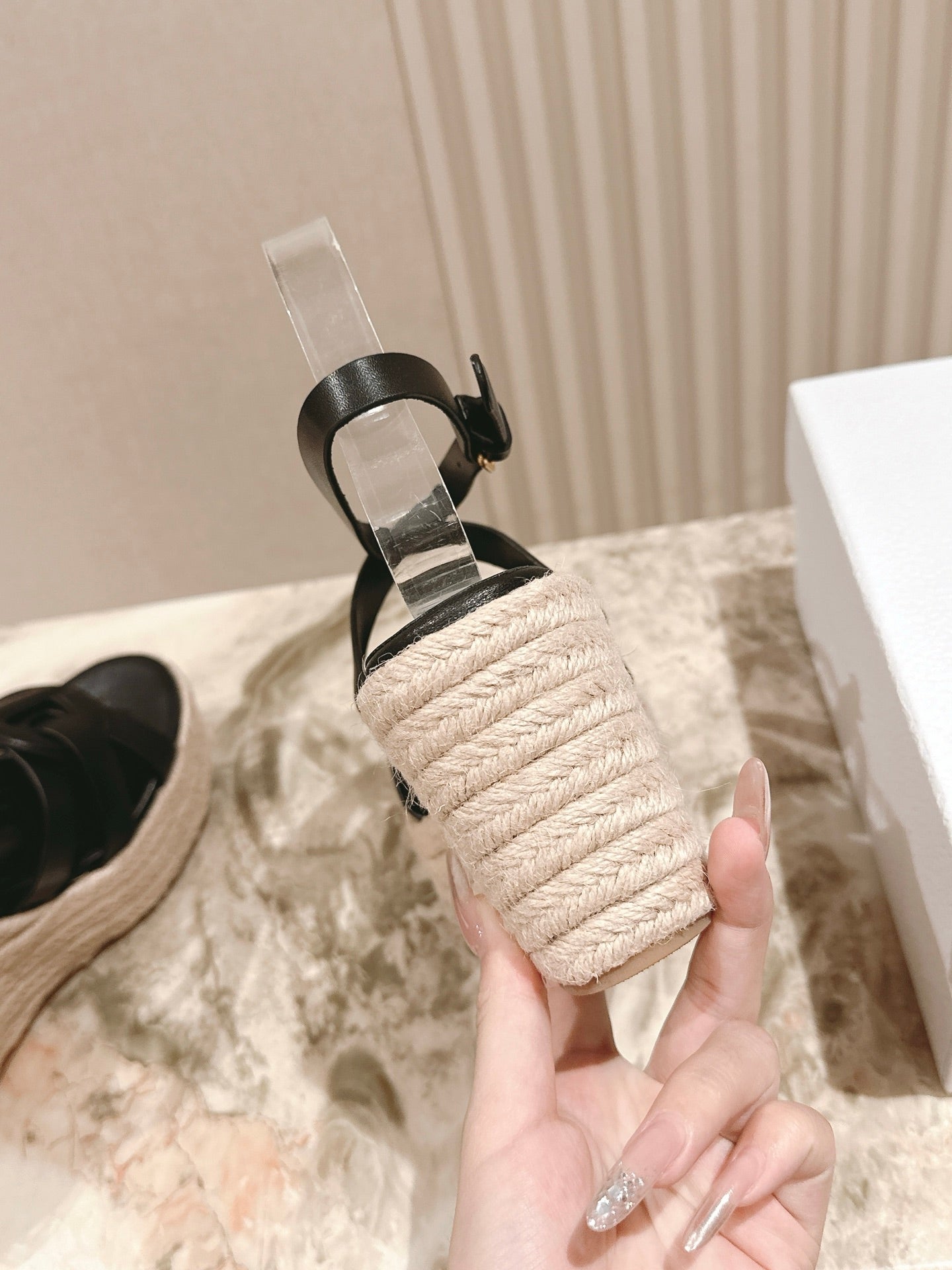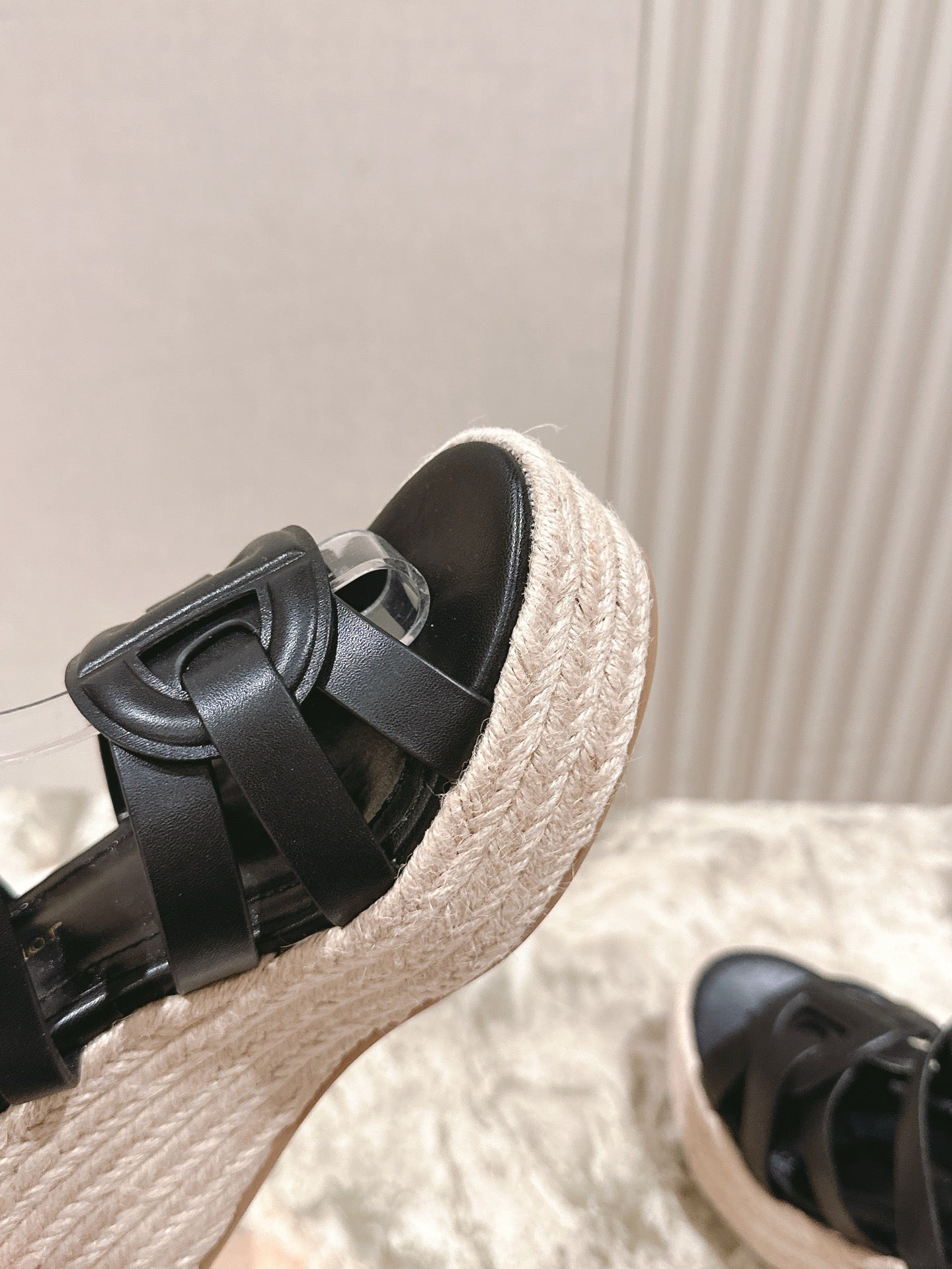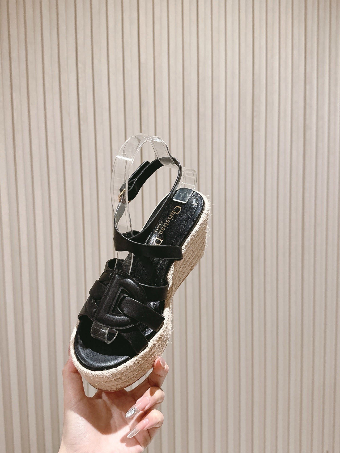 CD D-Club Wedge Sandal 85mm Black Calfskin 483082