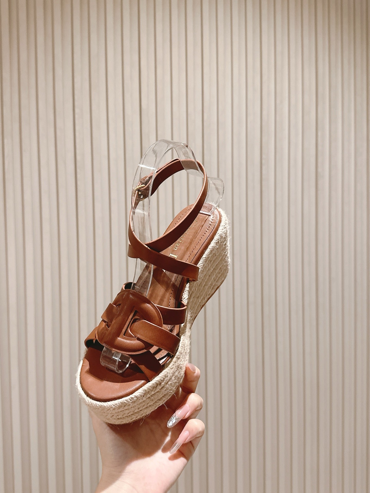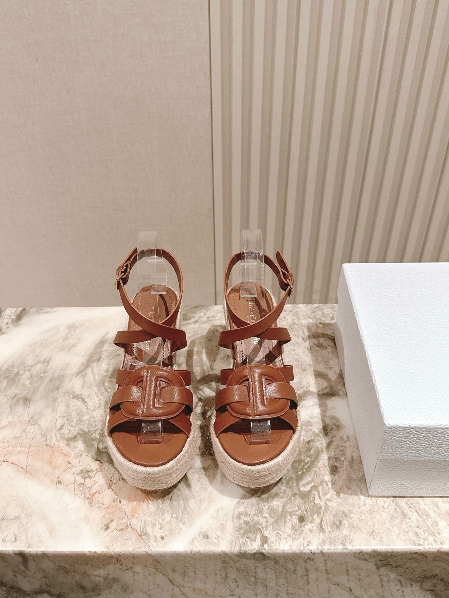 CD D-Club Wedge Sandal 85mm Camel Calfskin 483081