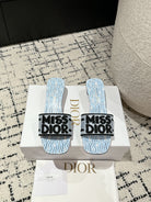 CD Dway Heeled Slide Blue Black Embroidered Cotton